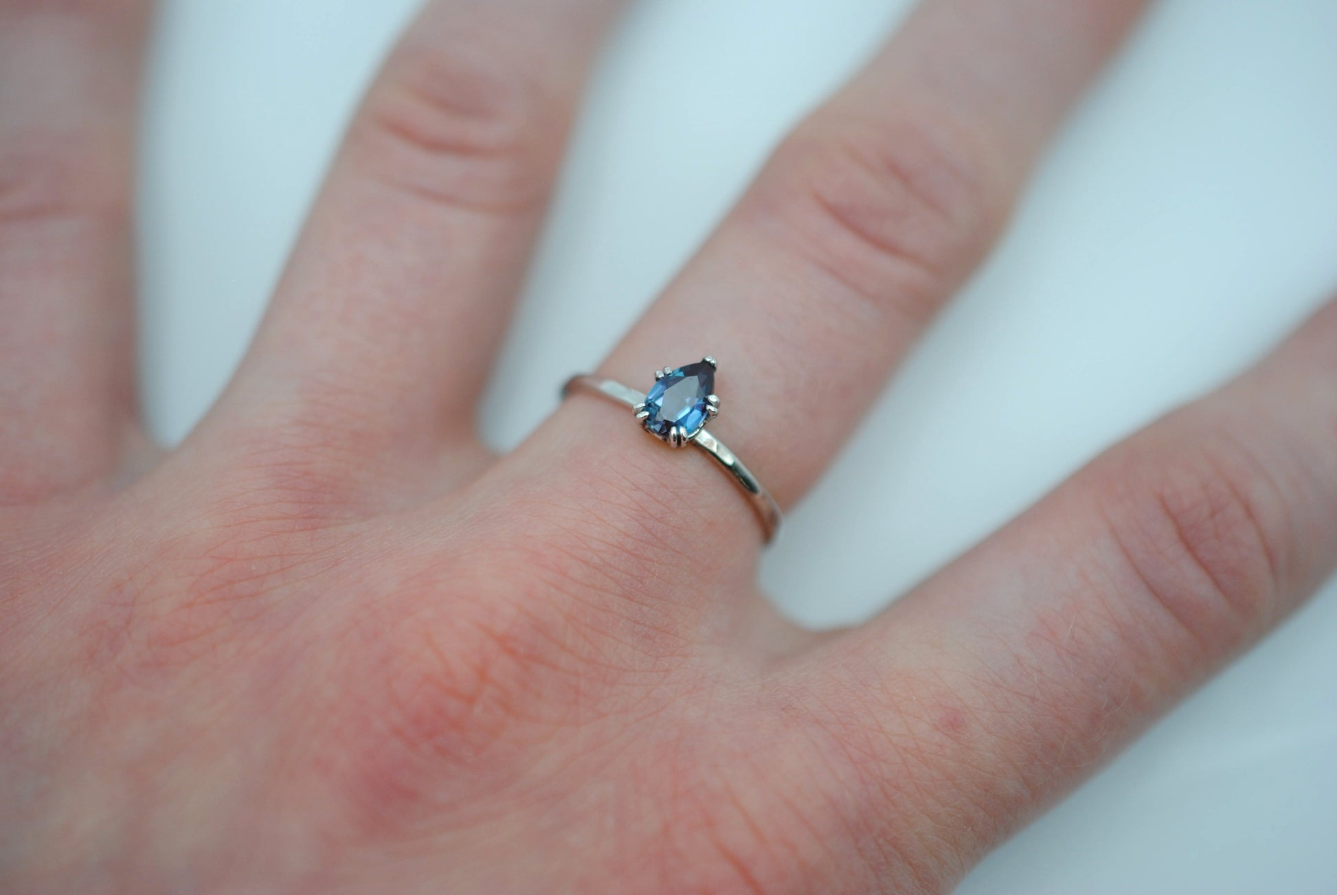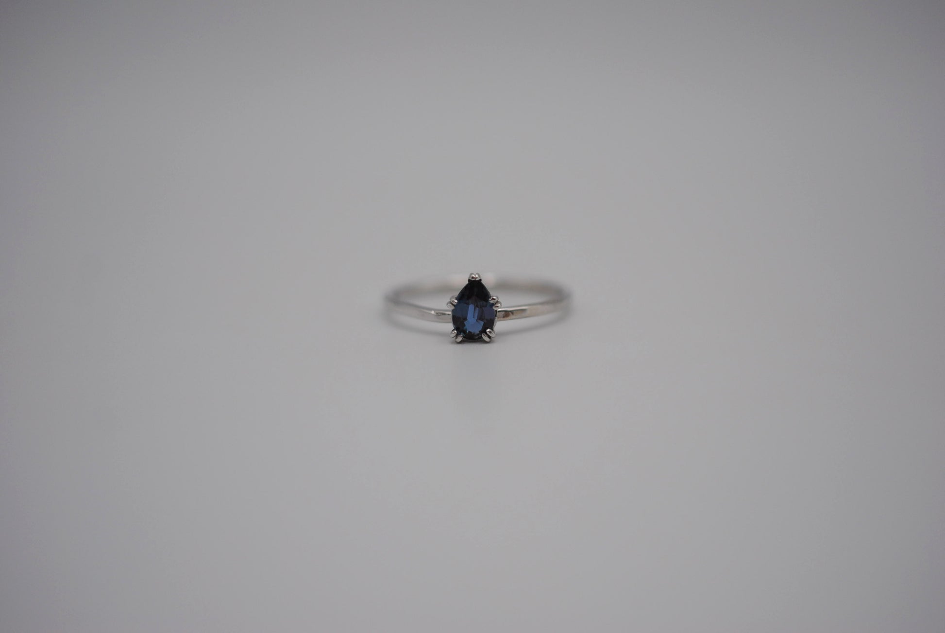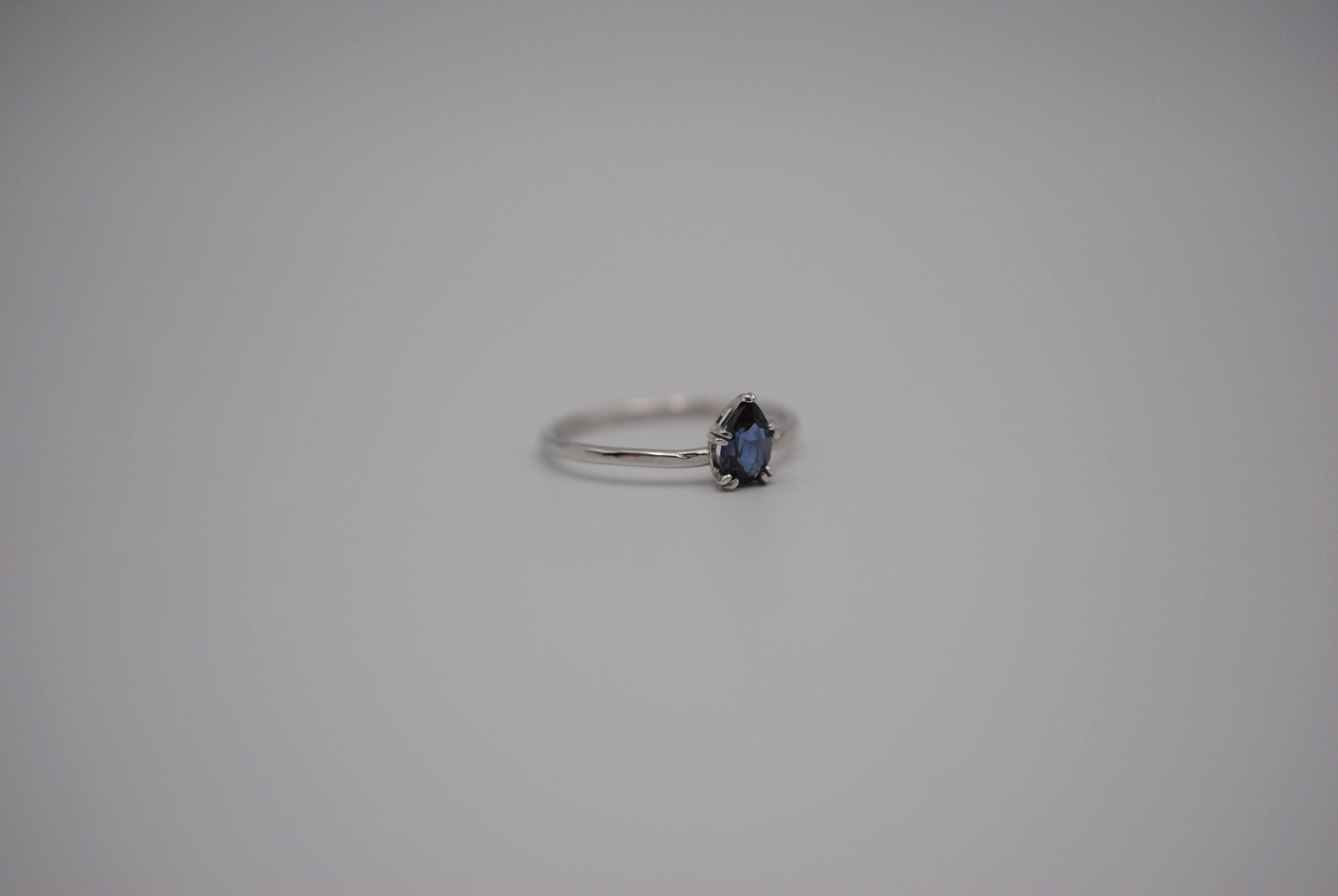 This is our Alexandrite Ring: Pear Cut, White Gold, Dainty.