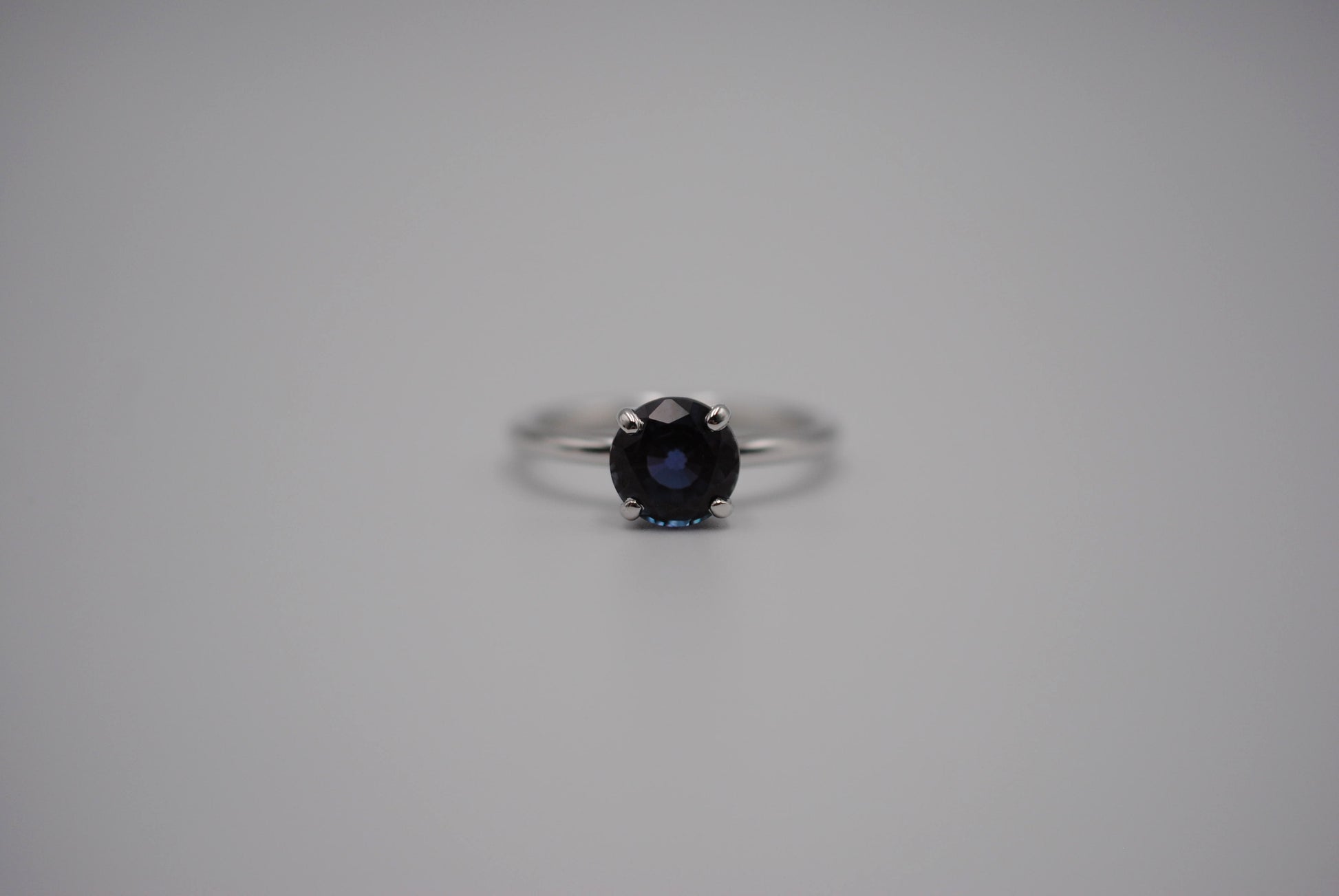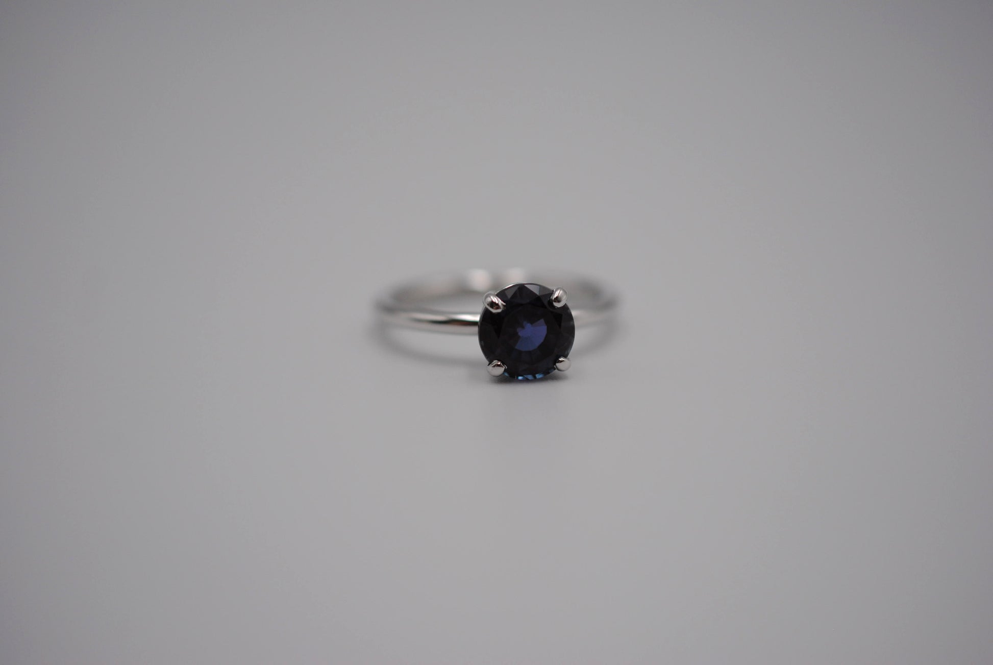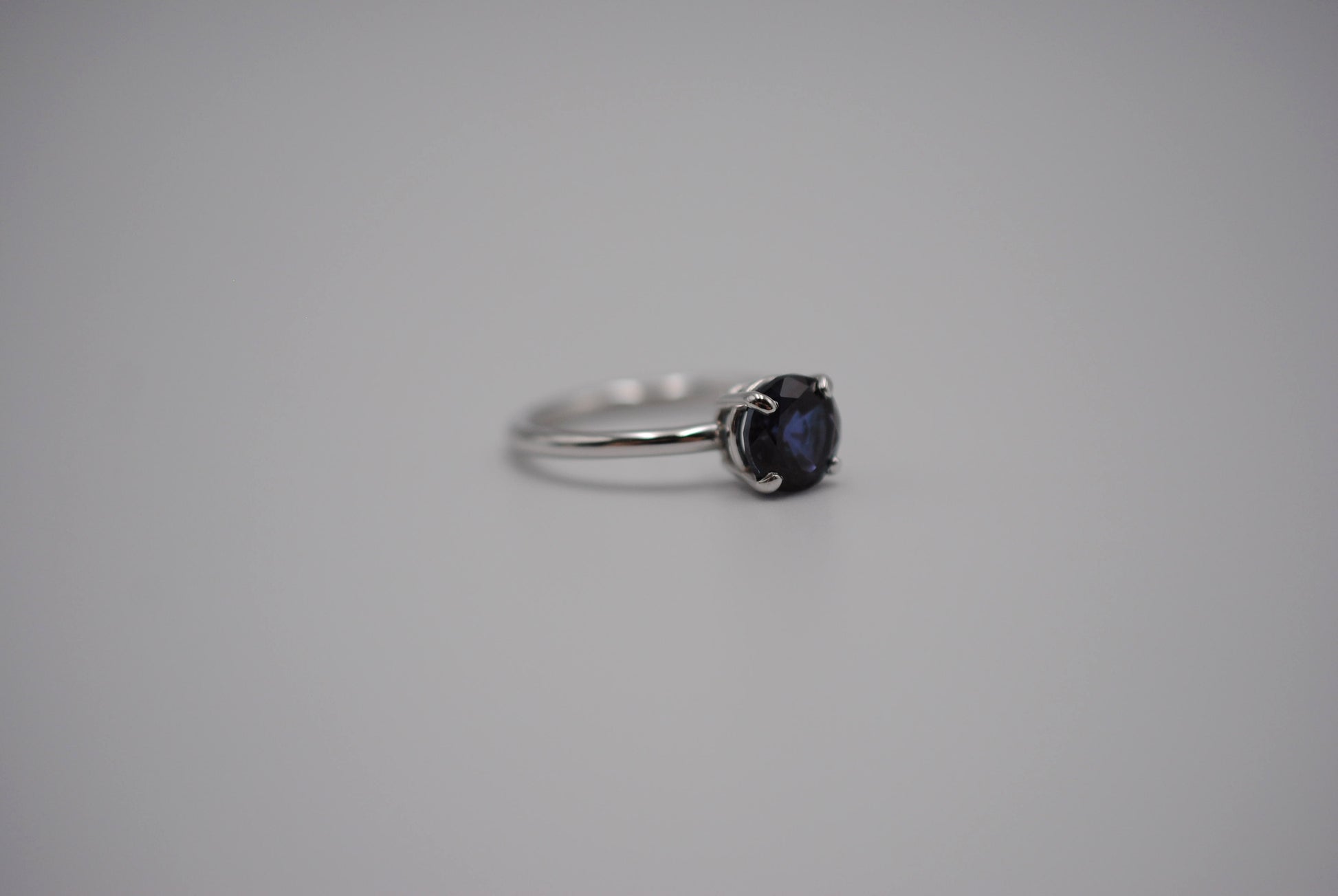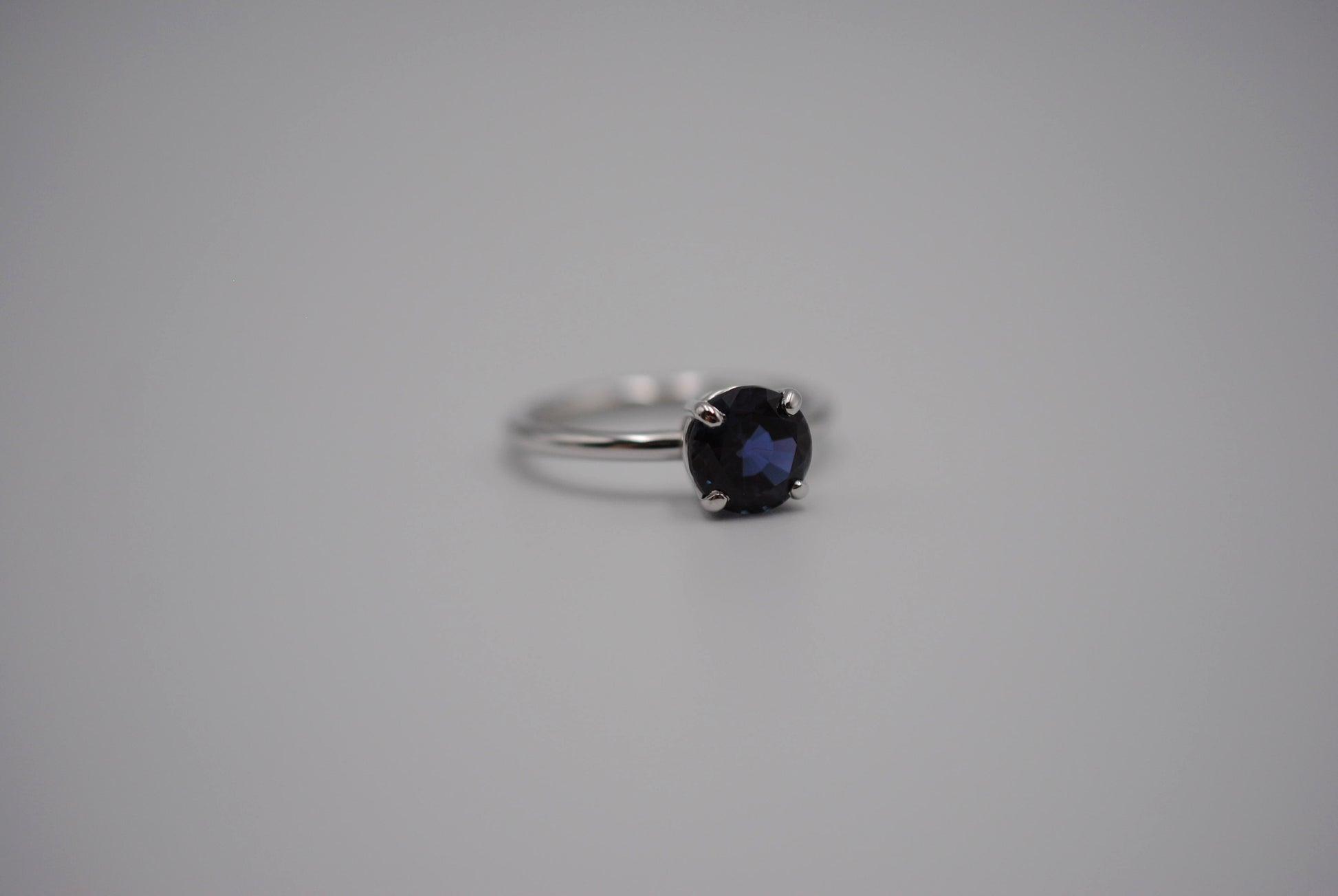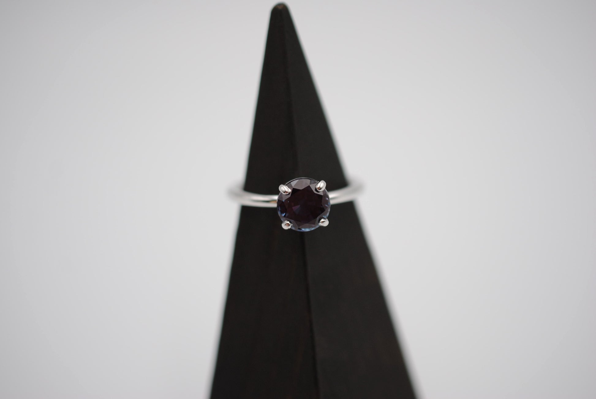 This is our Alexandrite Ring: Round Cut, White Gold, Prong Setting.