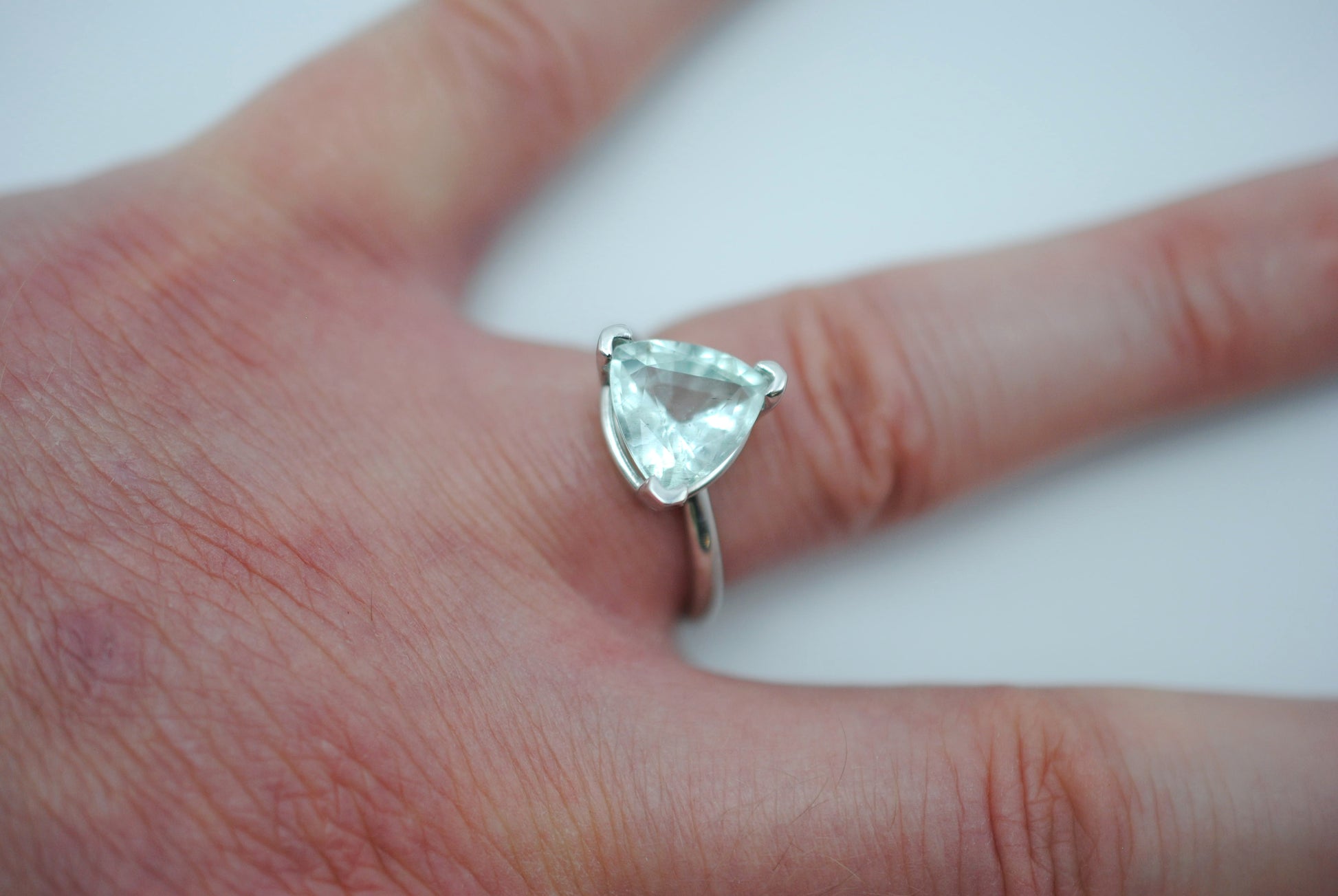 Aquamarine Ring: Trillion Cut, White Gold, V Prong Setting
