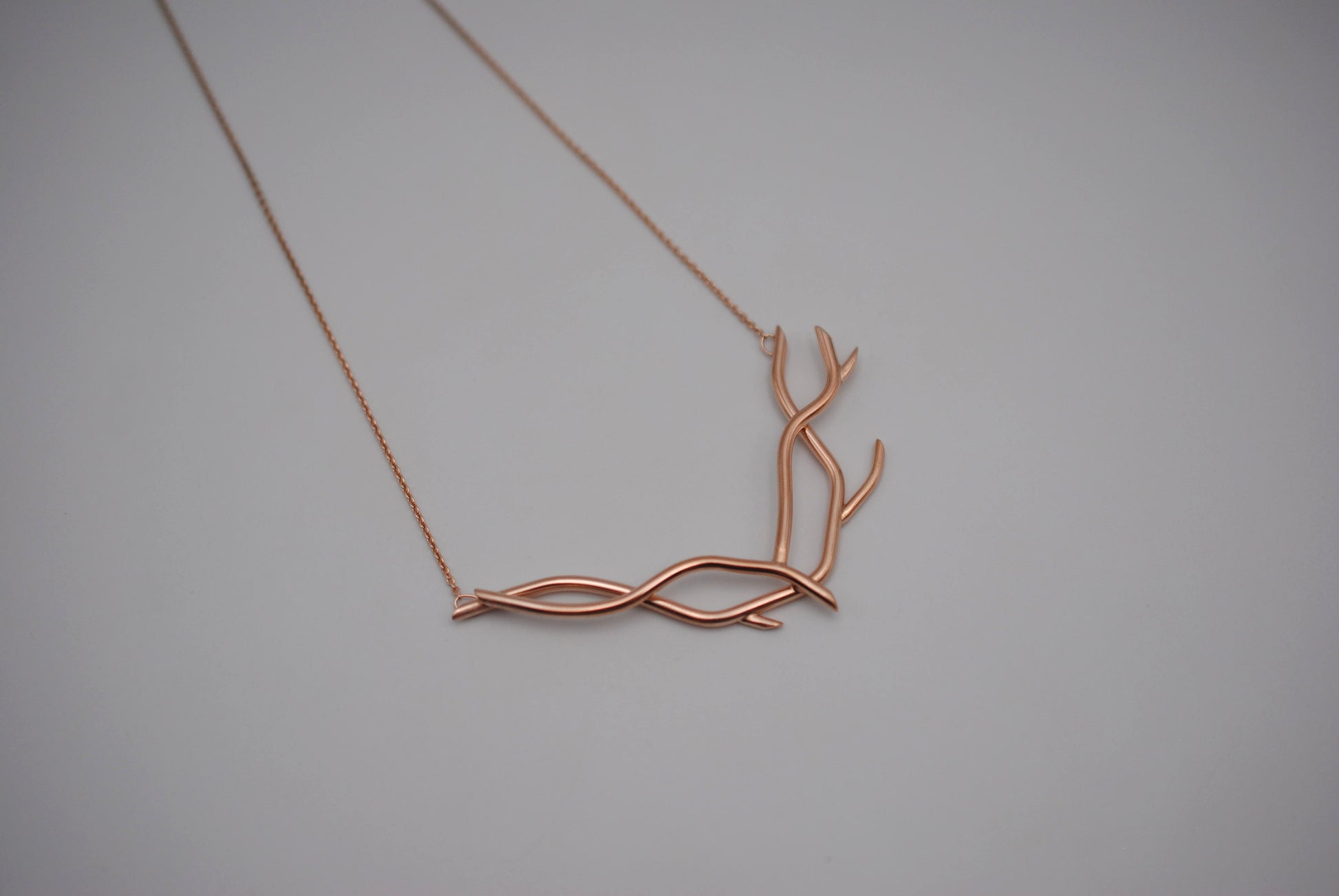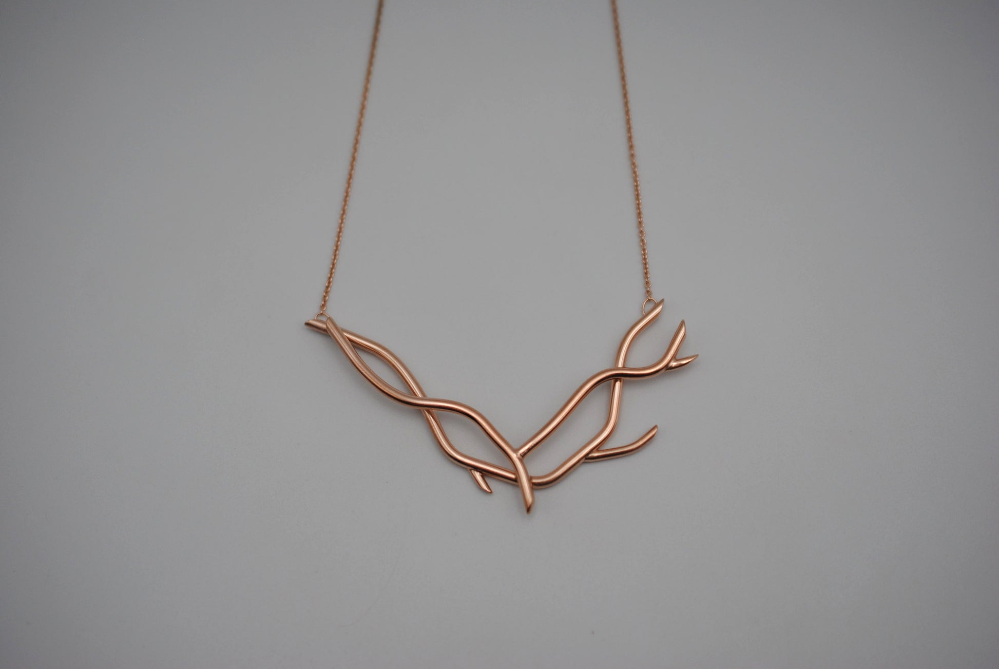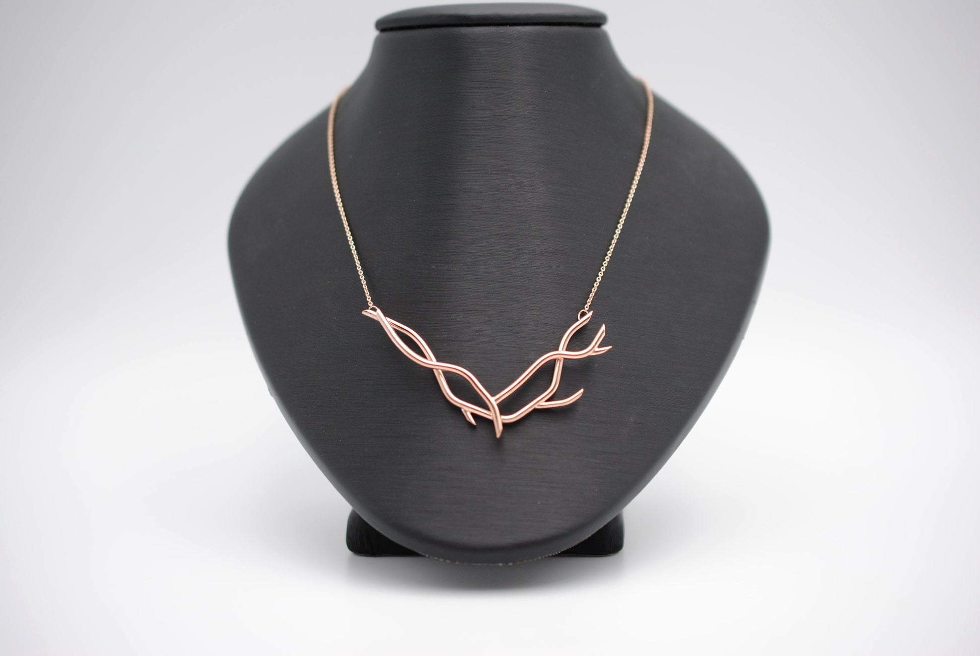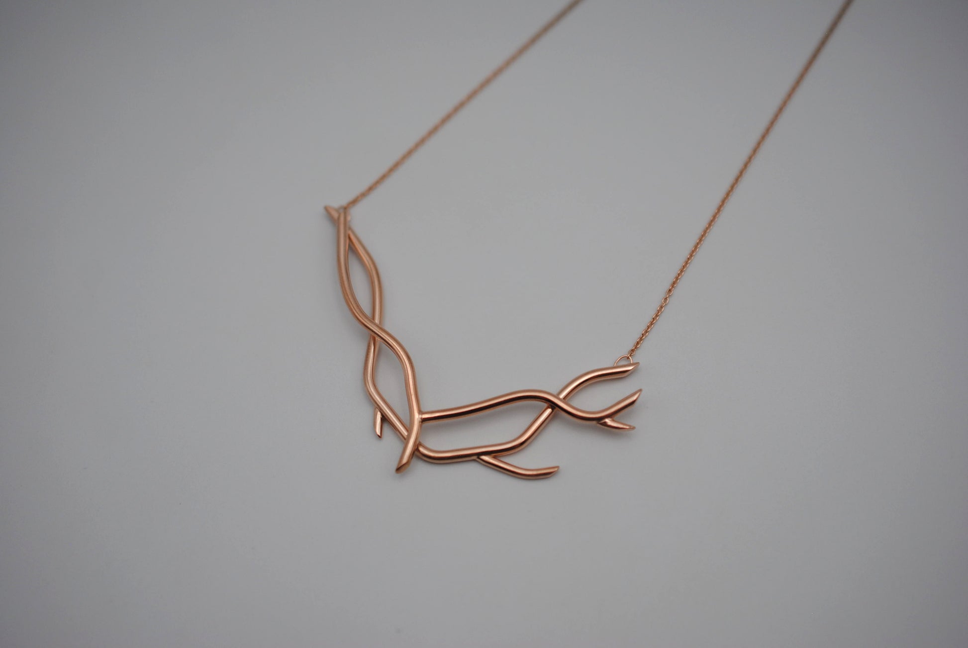 This is our Branching Nest Rose Gold Roots Necklace. A great necklace for nature lovers.