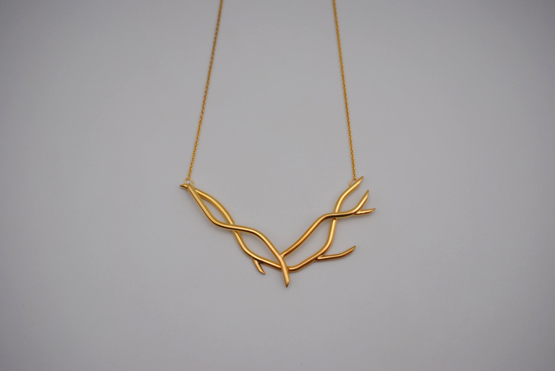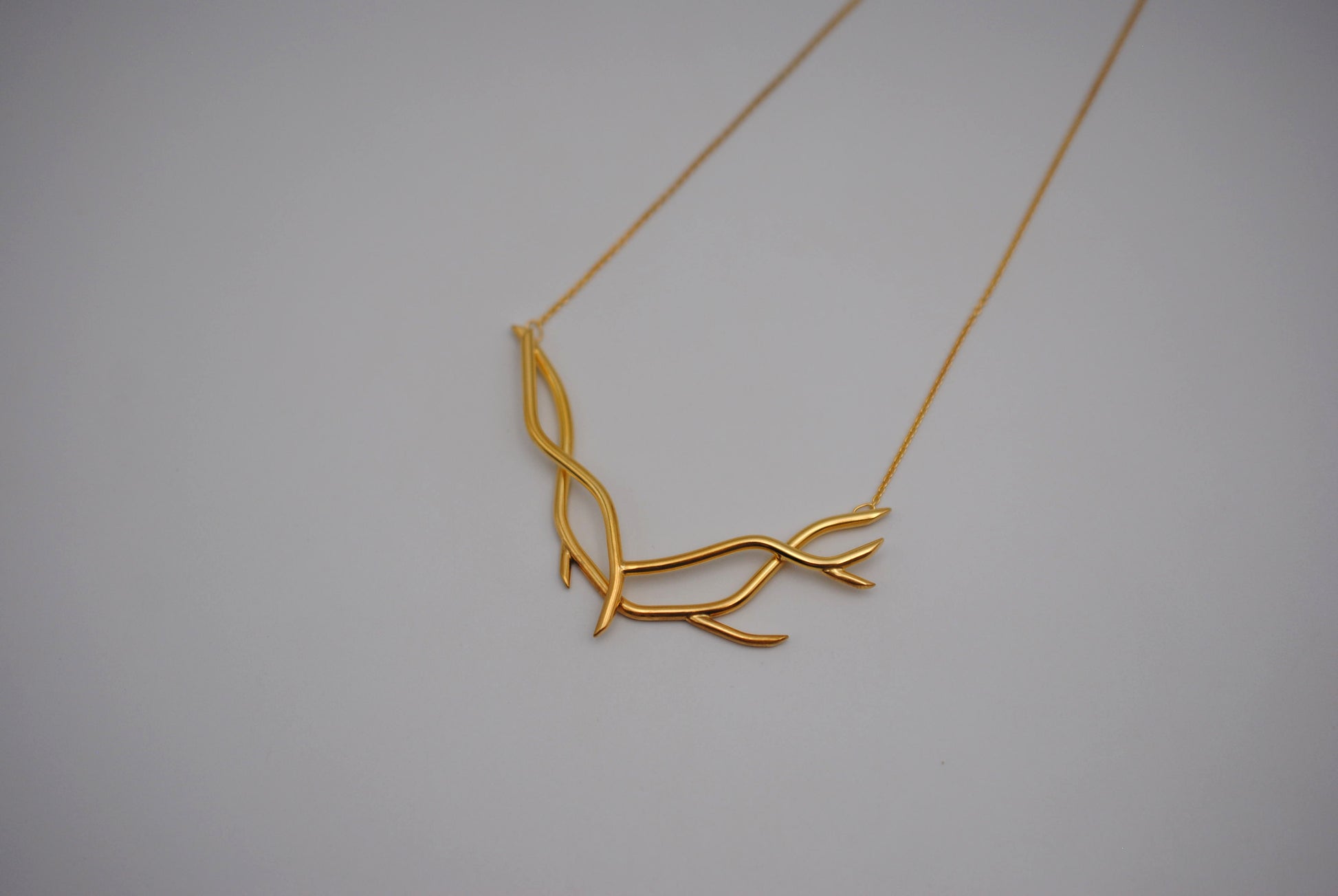 This is our Branching Nest Yellow Gold Roots Necklace. A great necklace for nature lovers.