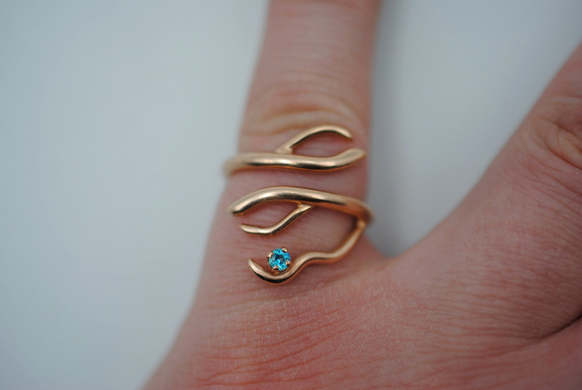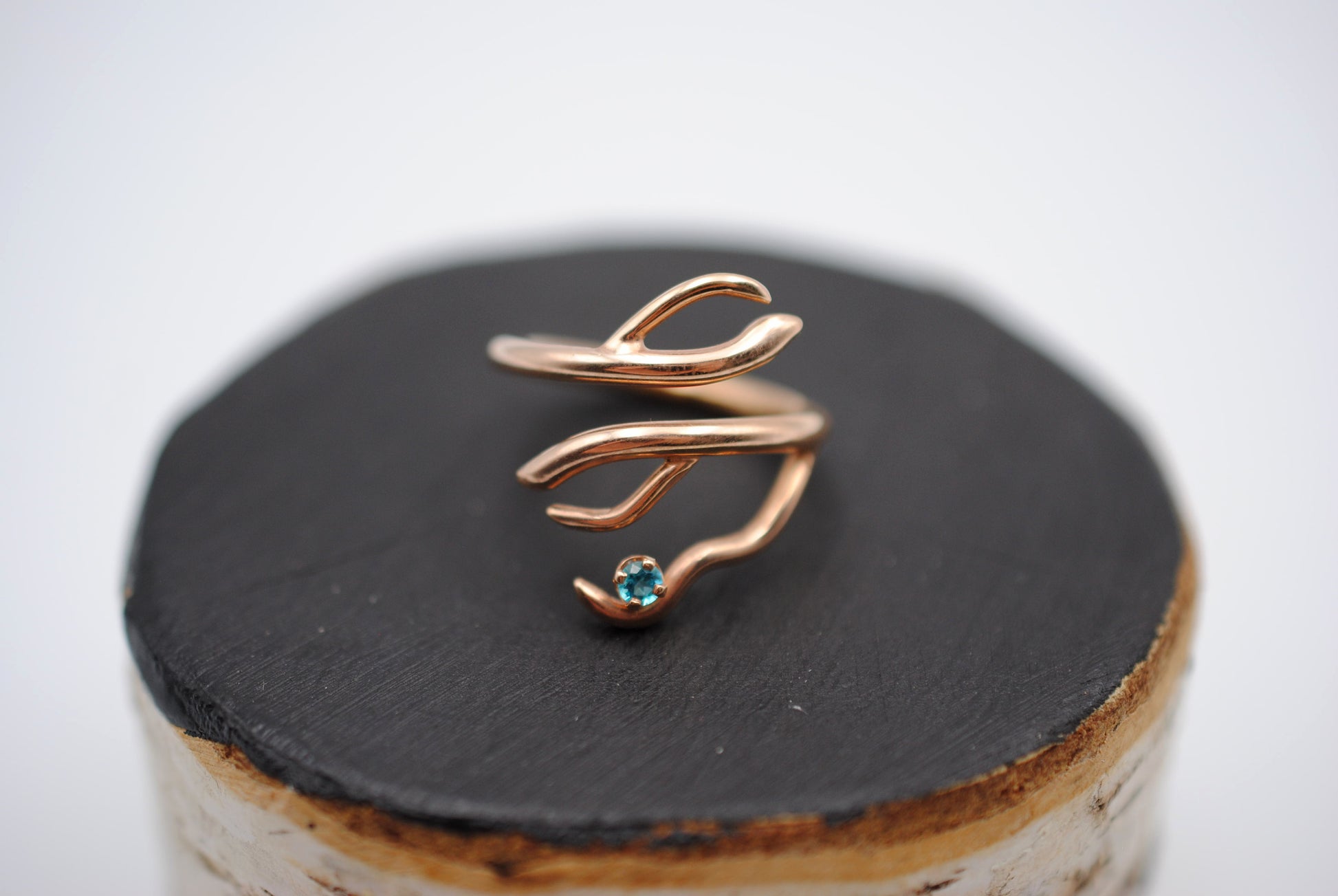 This is our Branching Rose Gold Roots Ring with a Pariaba Topaz Gemstone.