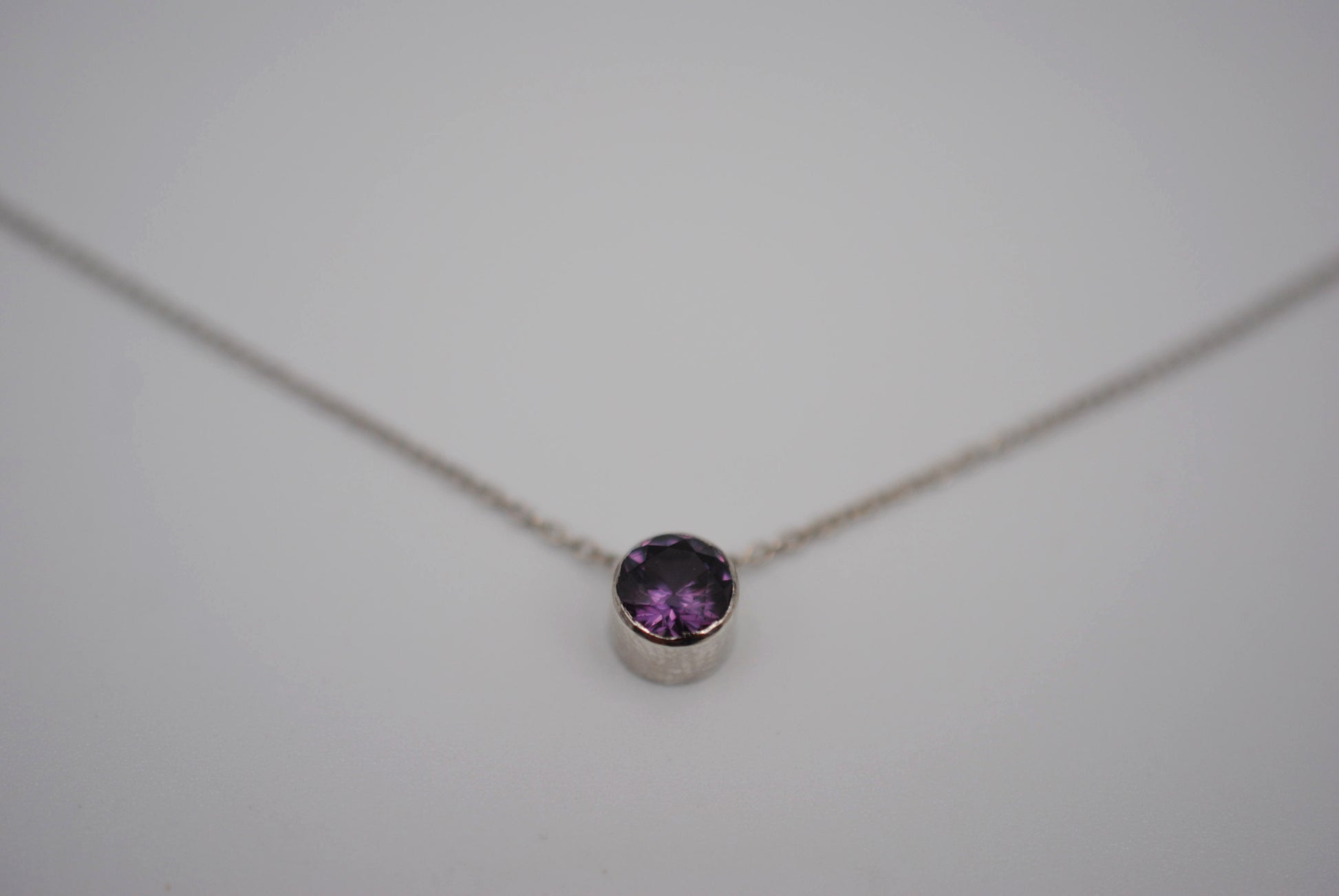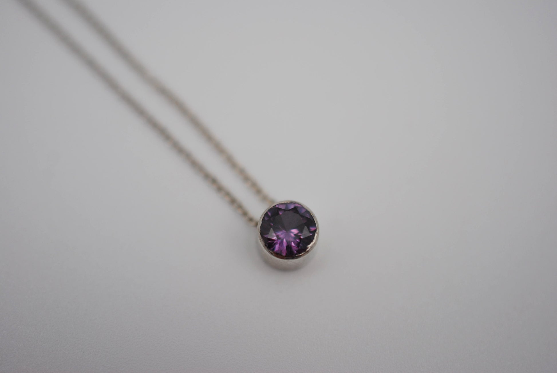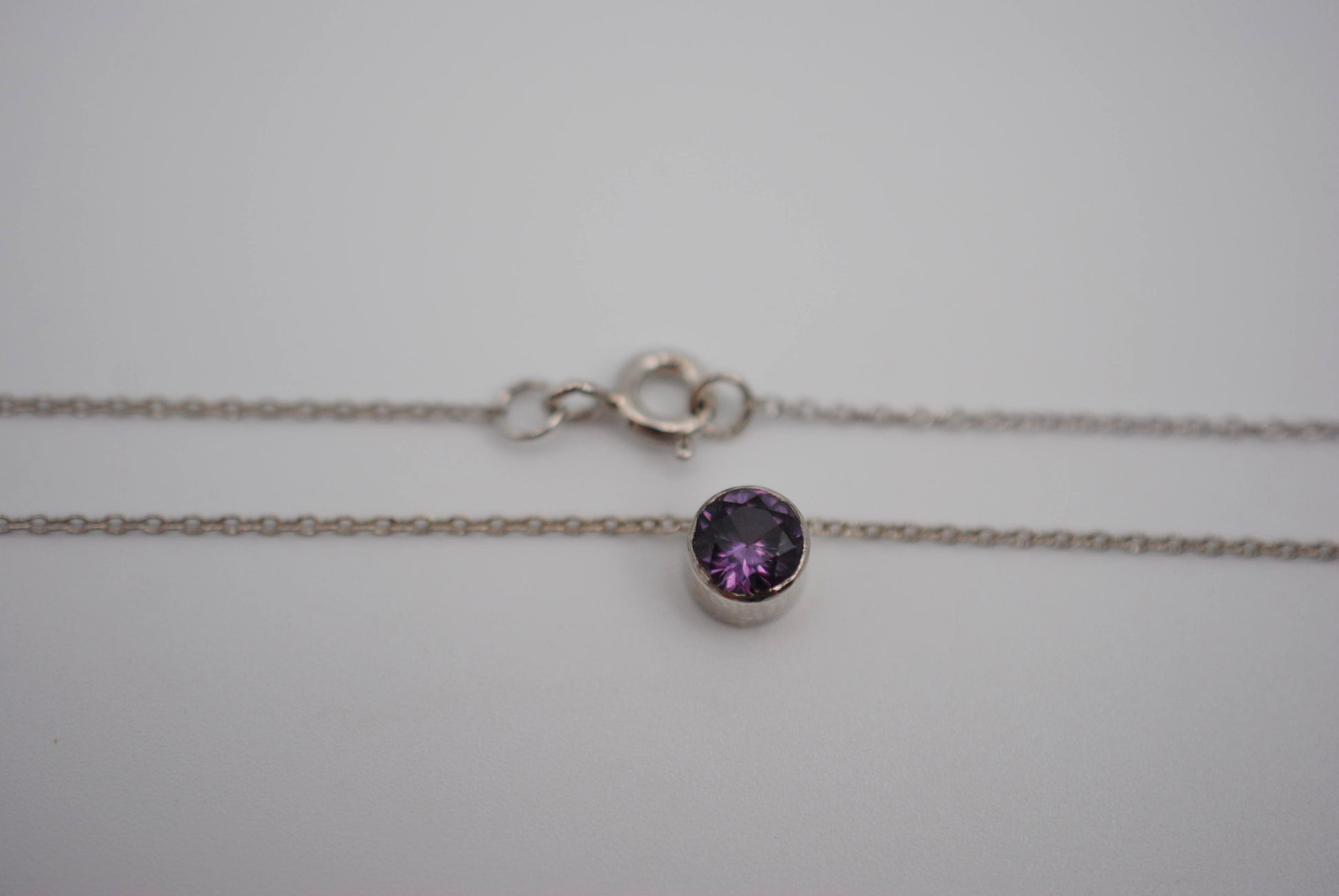 The pendant features an alexandrite 5mm in diameter. This is the birthstone for June.