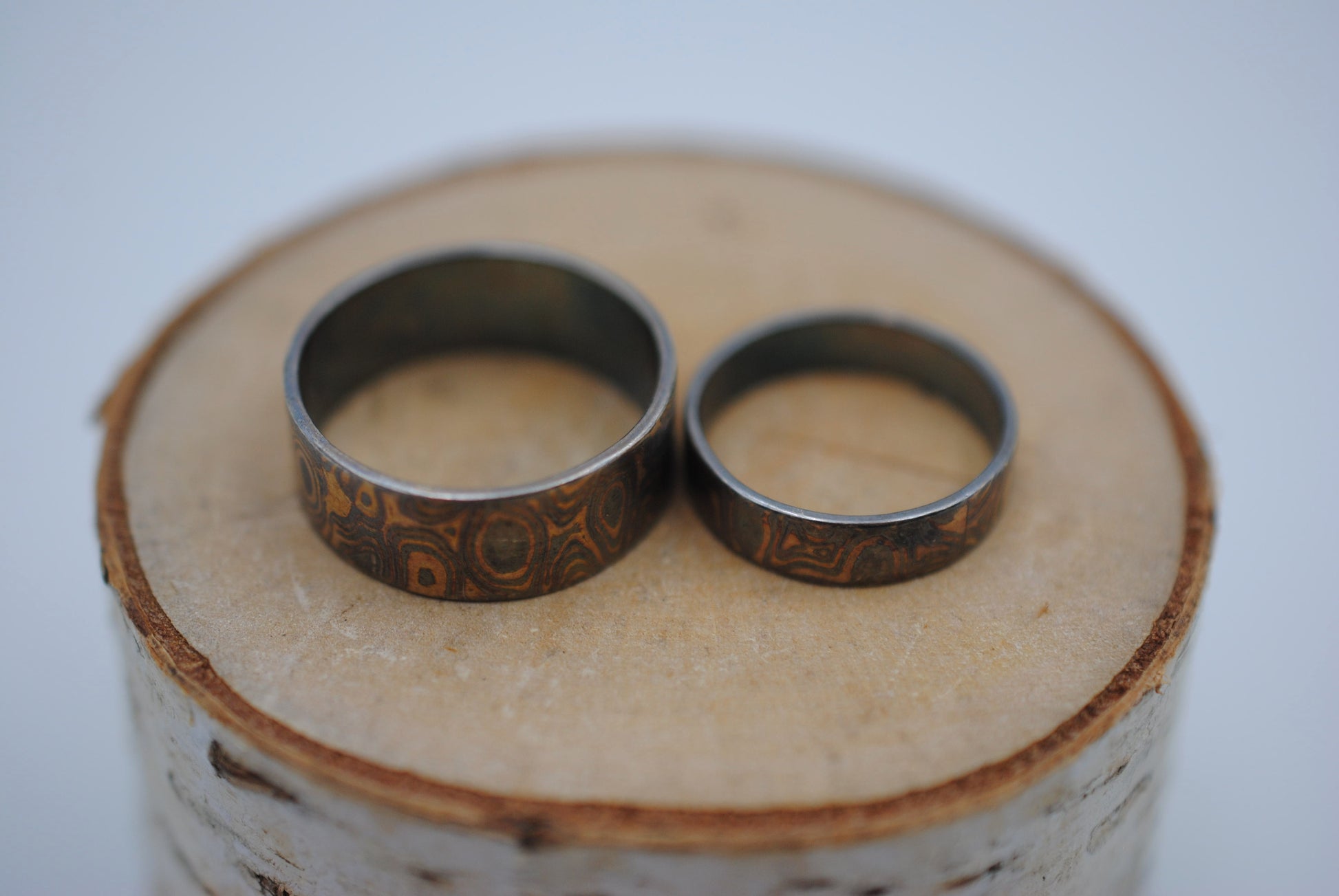 Four Tone Gold Patina Mokume Gane Wedding Set