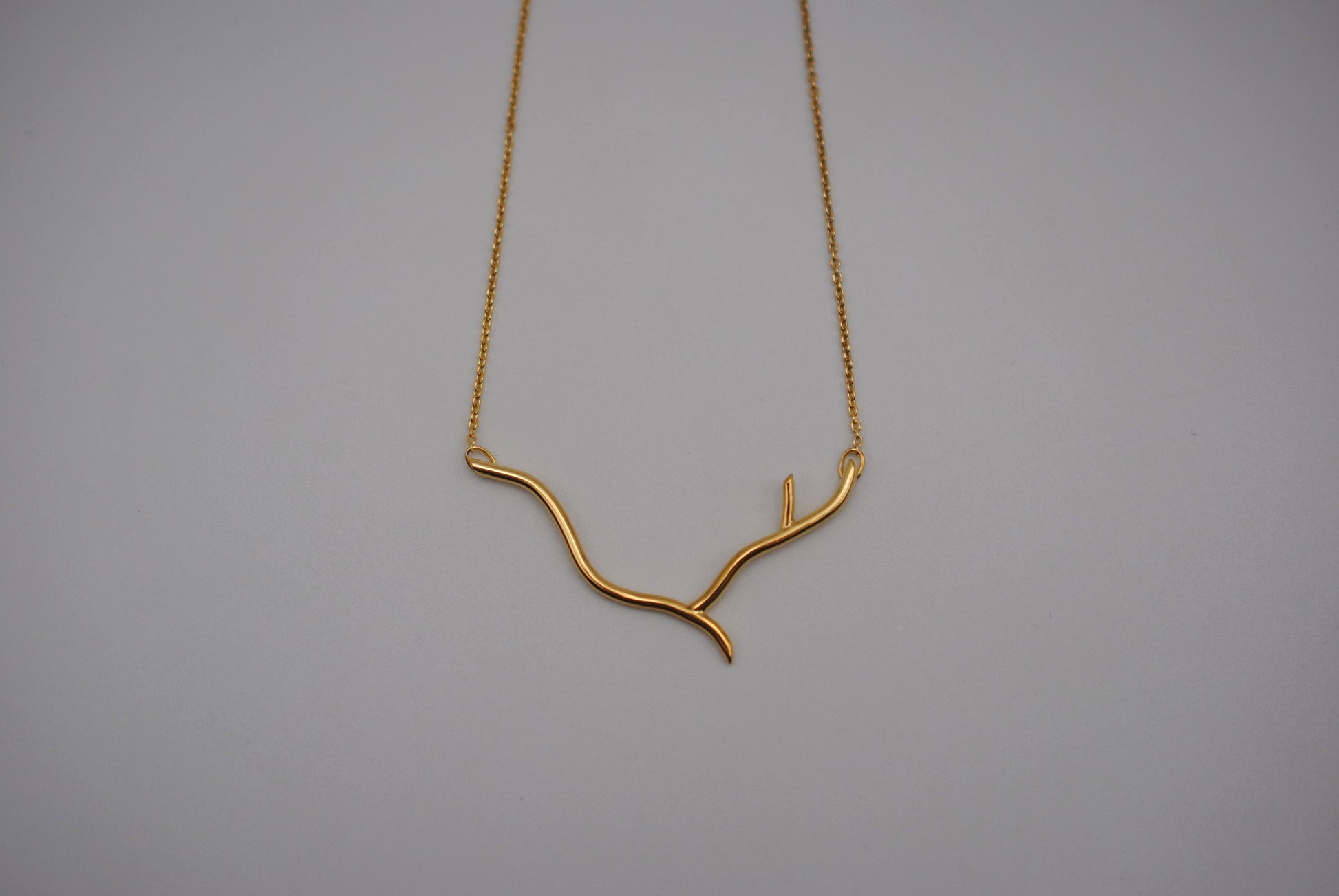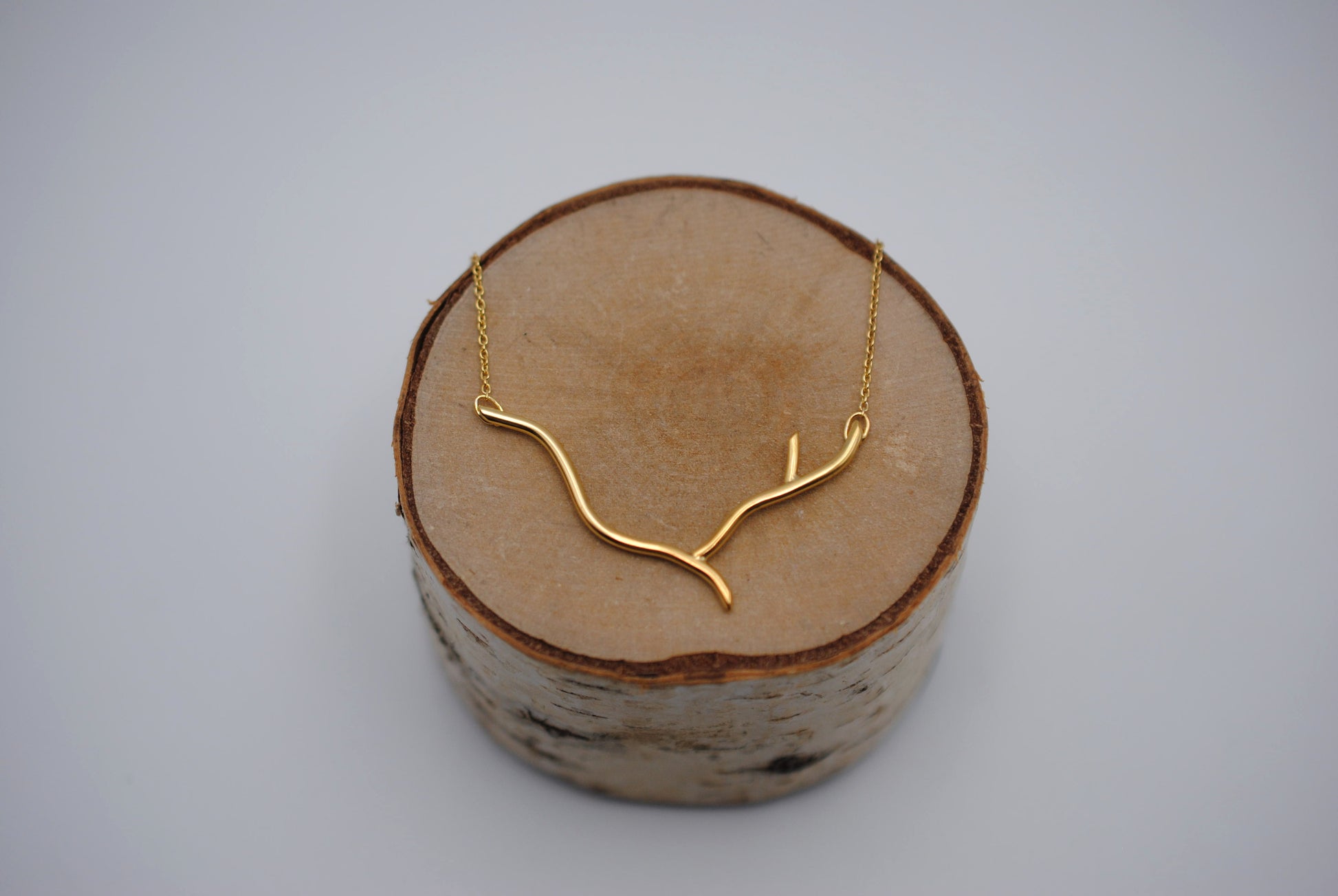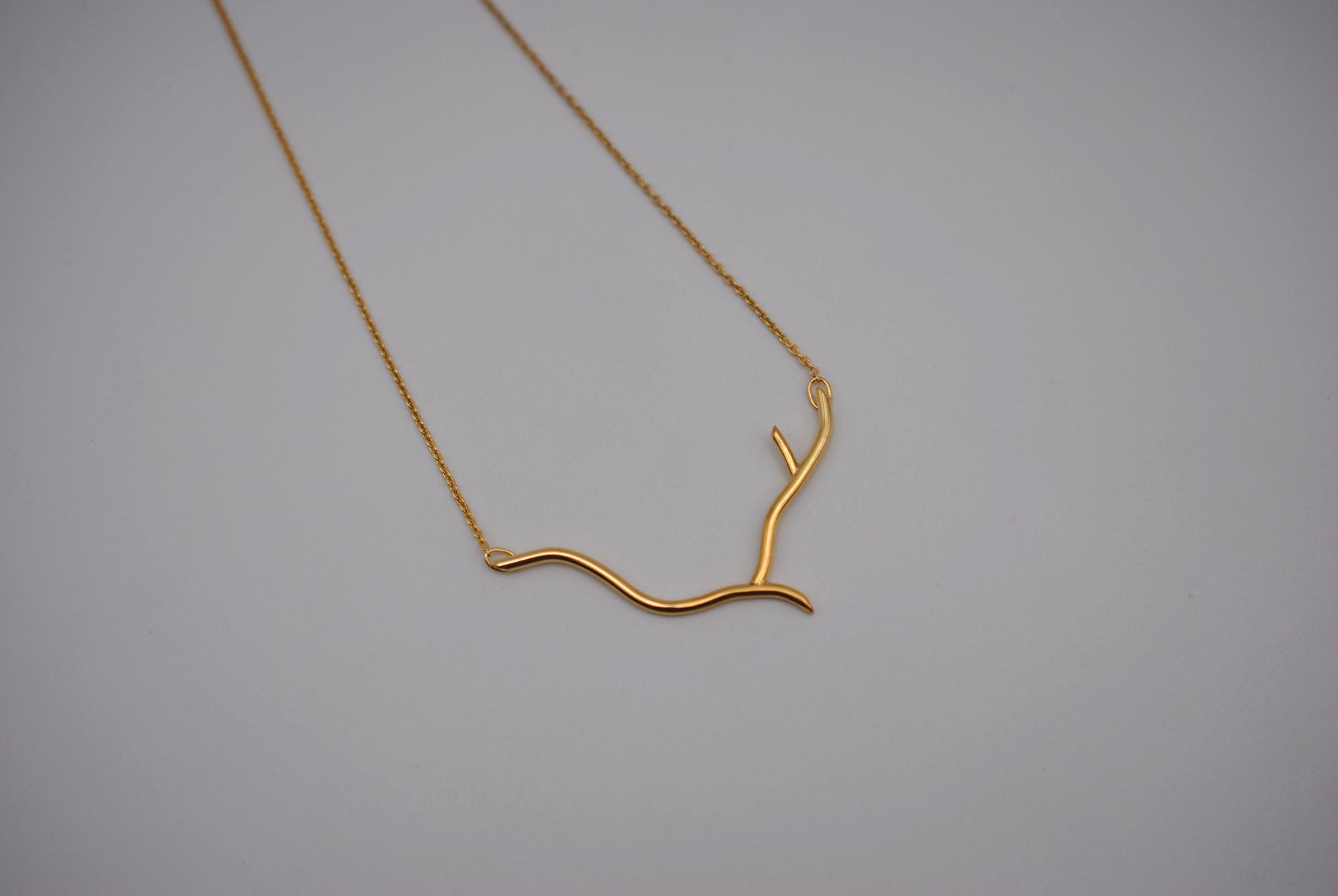 This is our Twig Yellow Gold Roots Necklace. A great necklace for nature lovers.