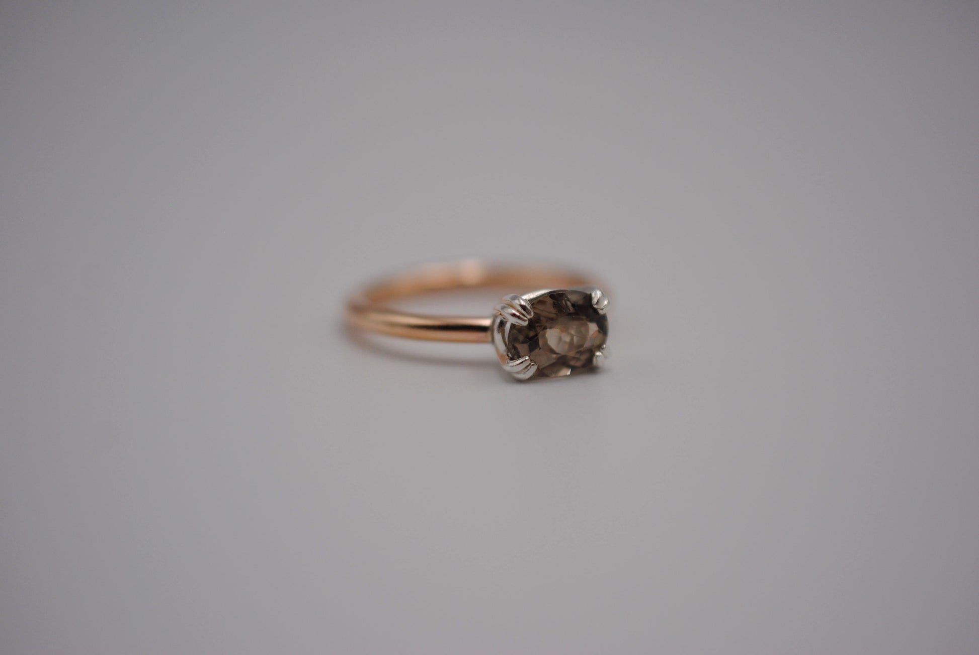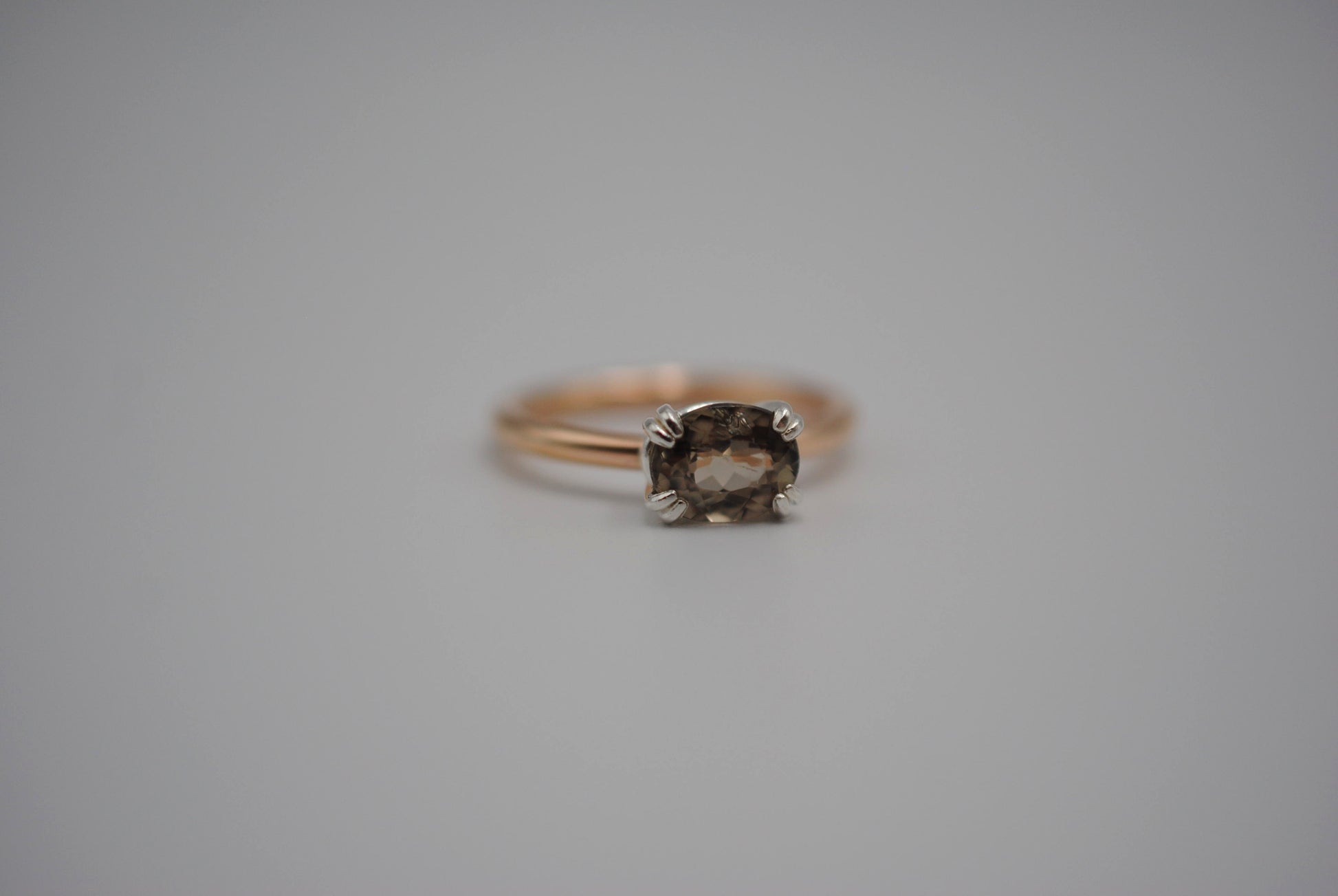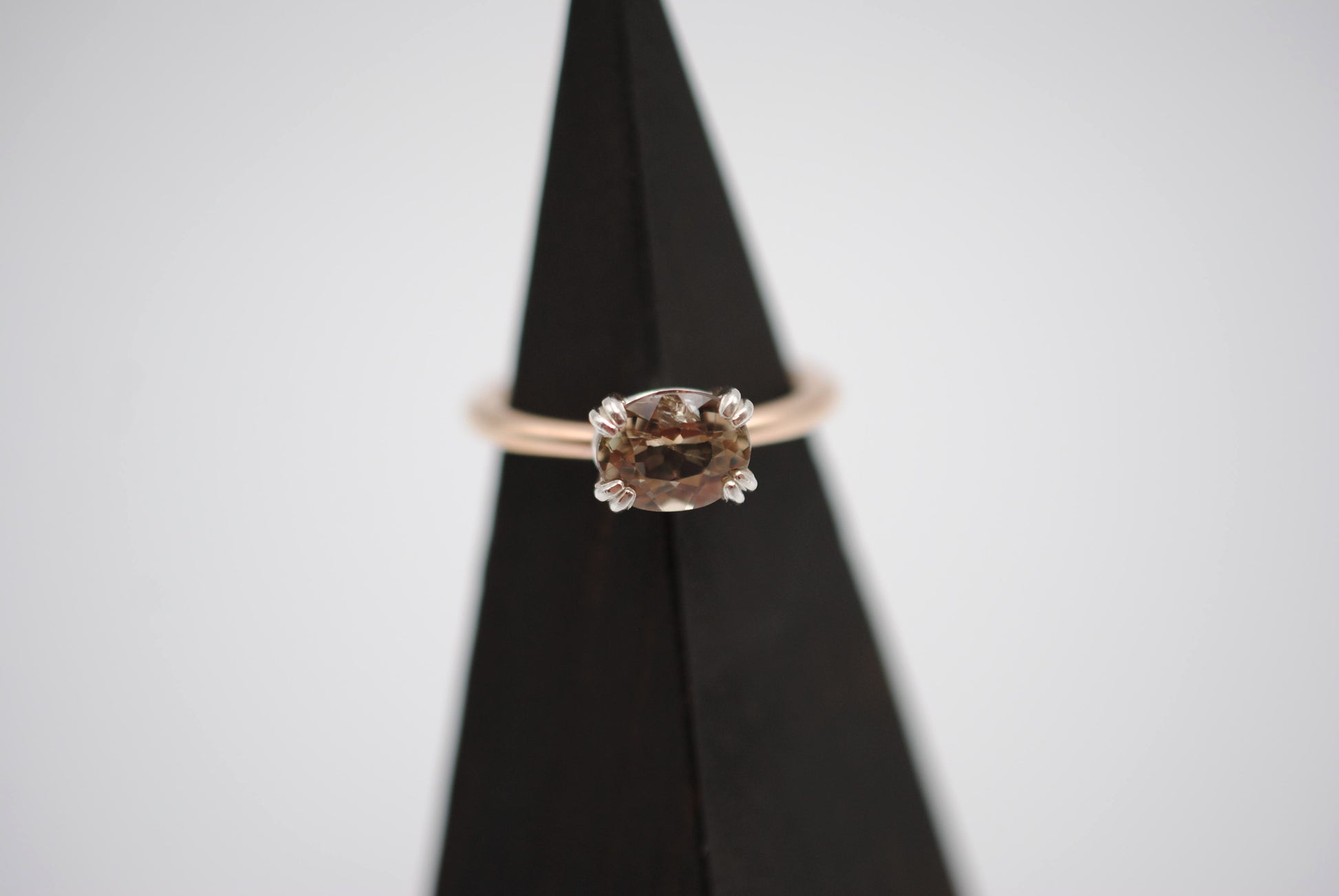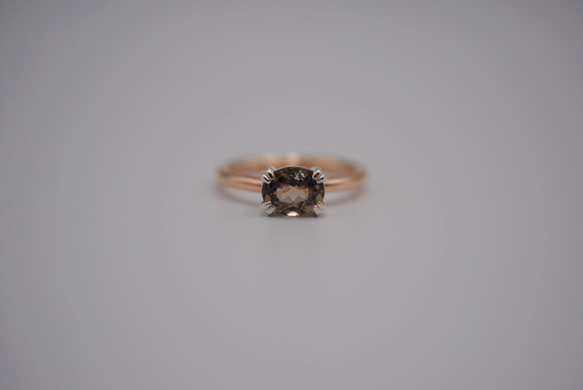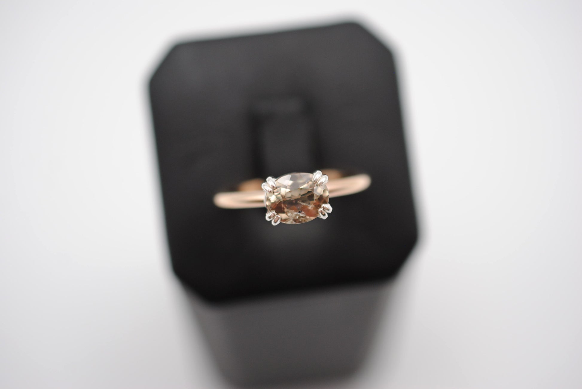 This is our Diaspore Ring: Oval Cut, Yellow Gold Fill Band, East-West Silver Setting.
