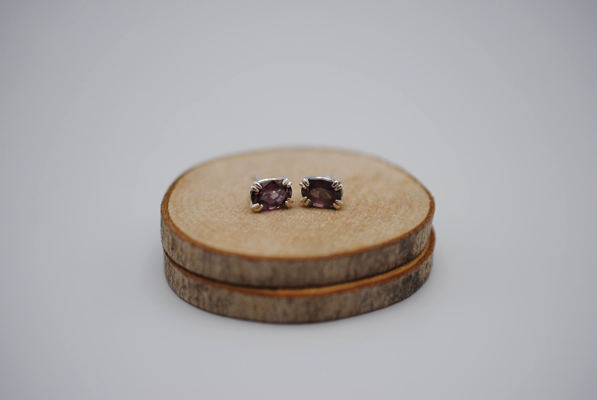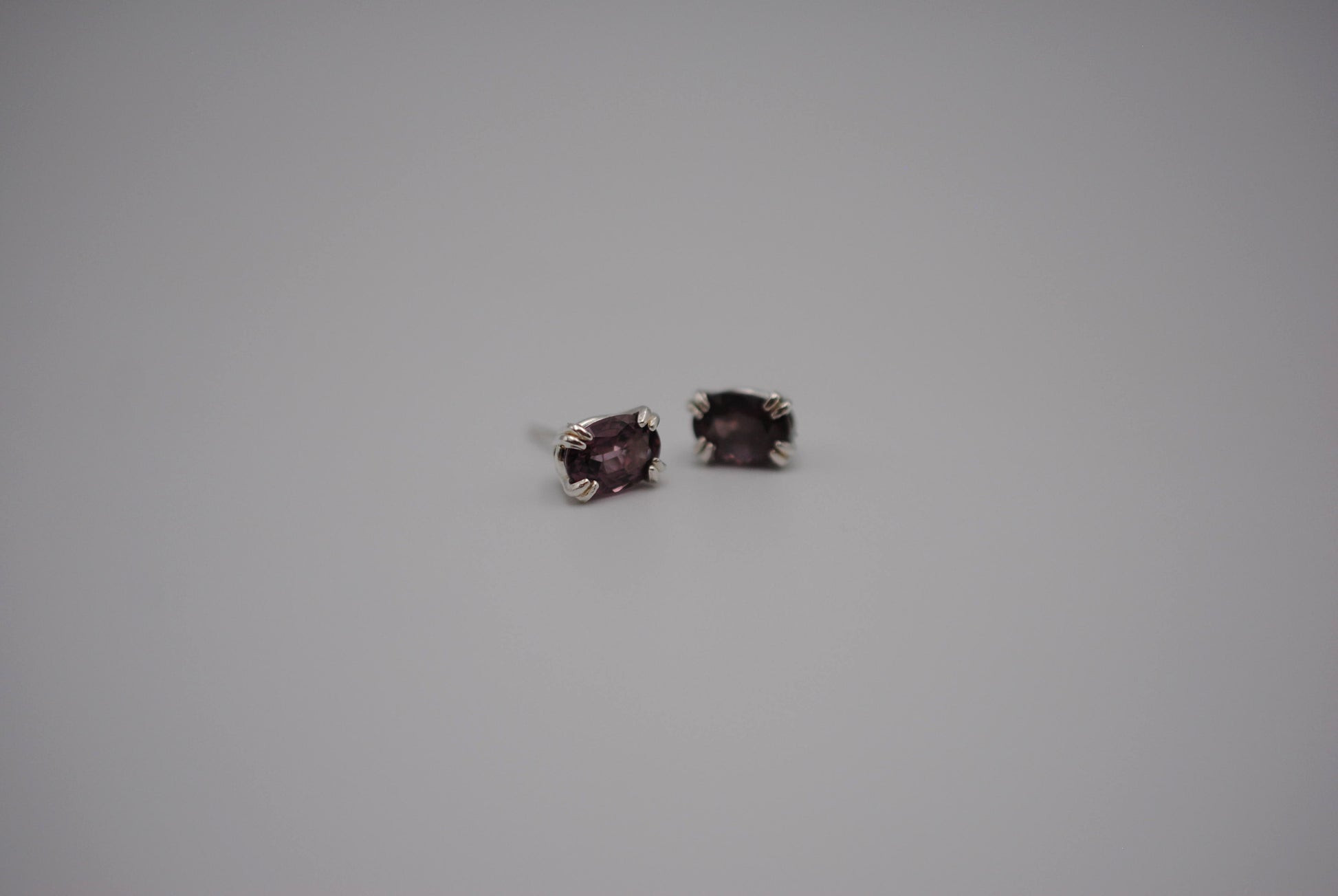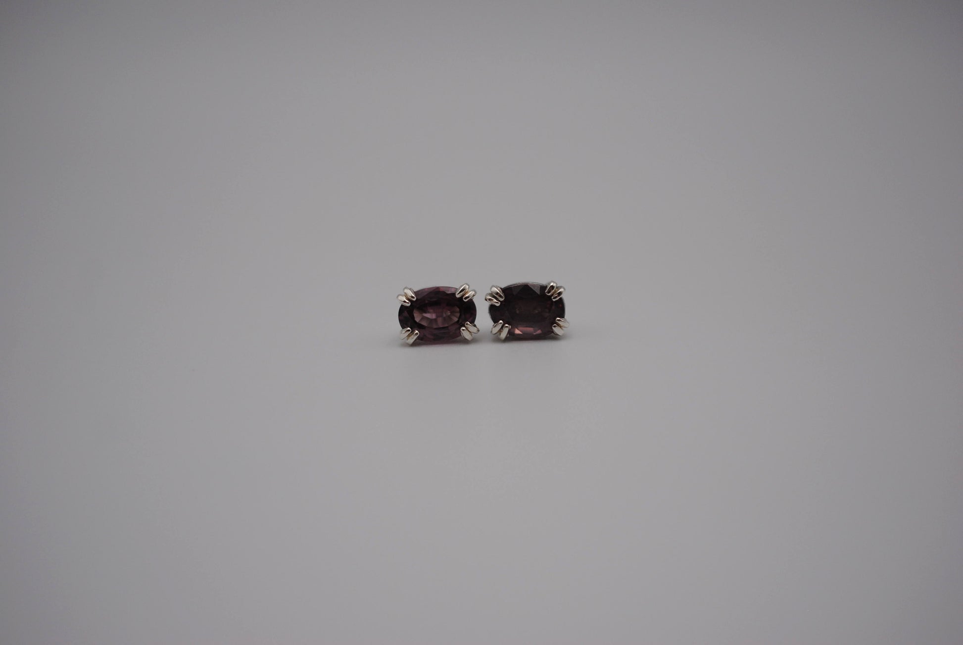 This is our Garnet Post Earrings: Oval Cut, Malaia, Silver, Double Prong Setting.