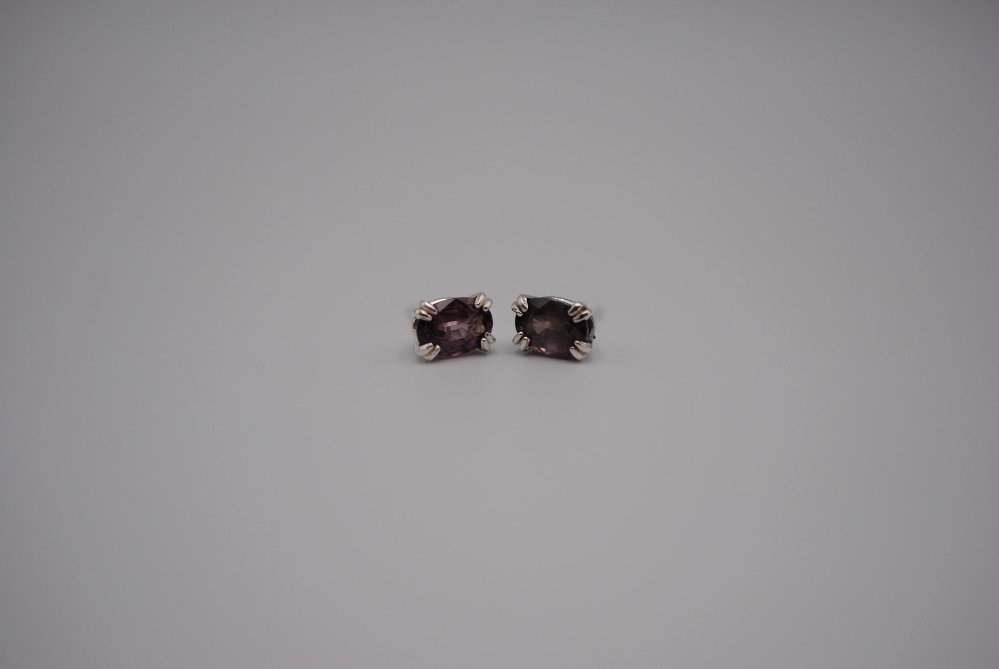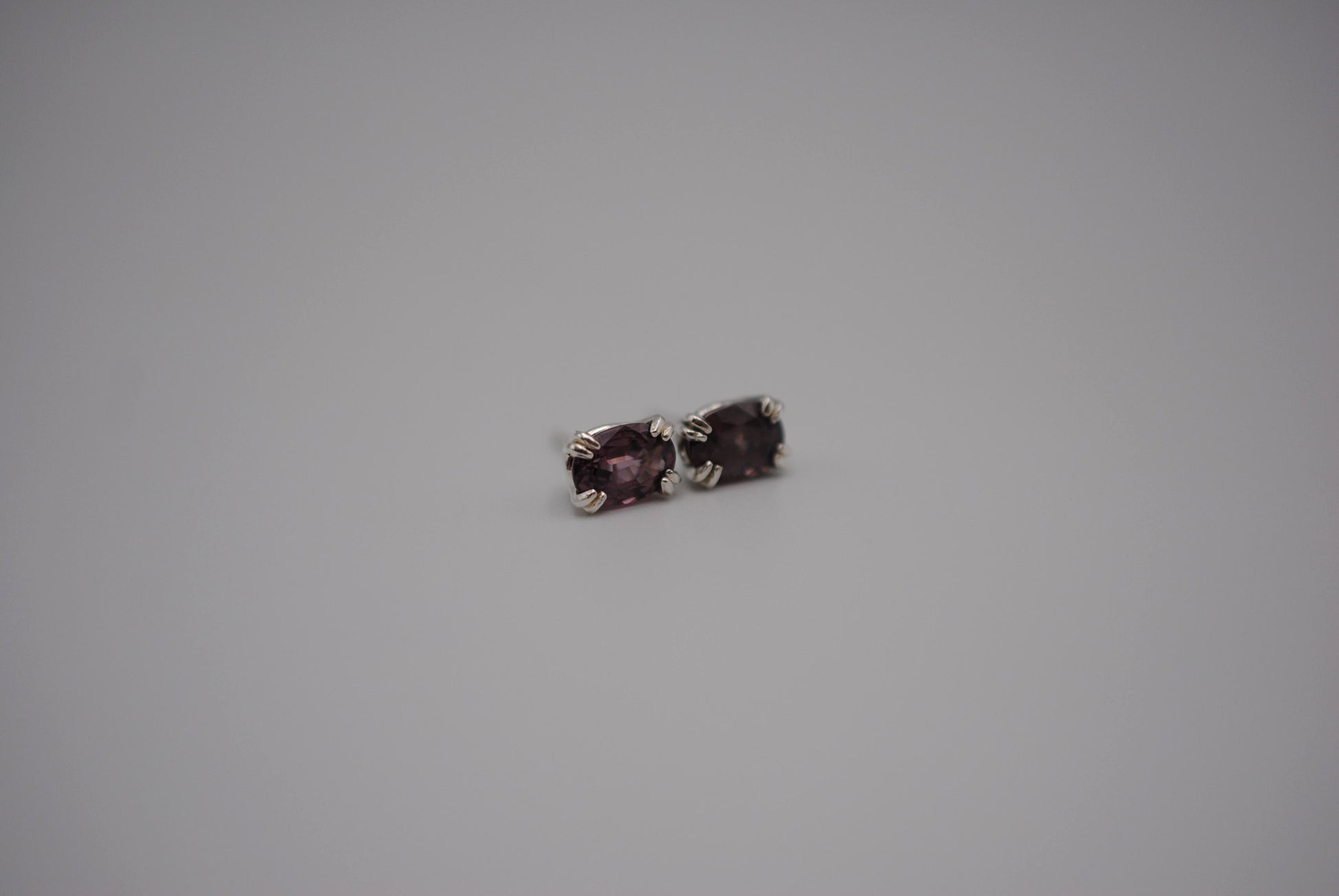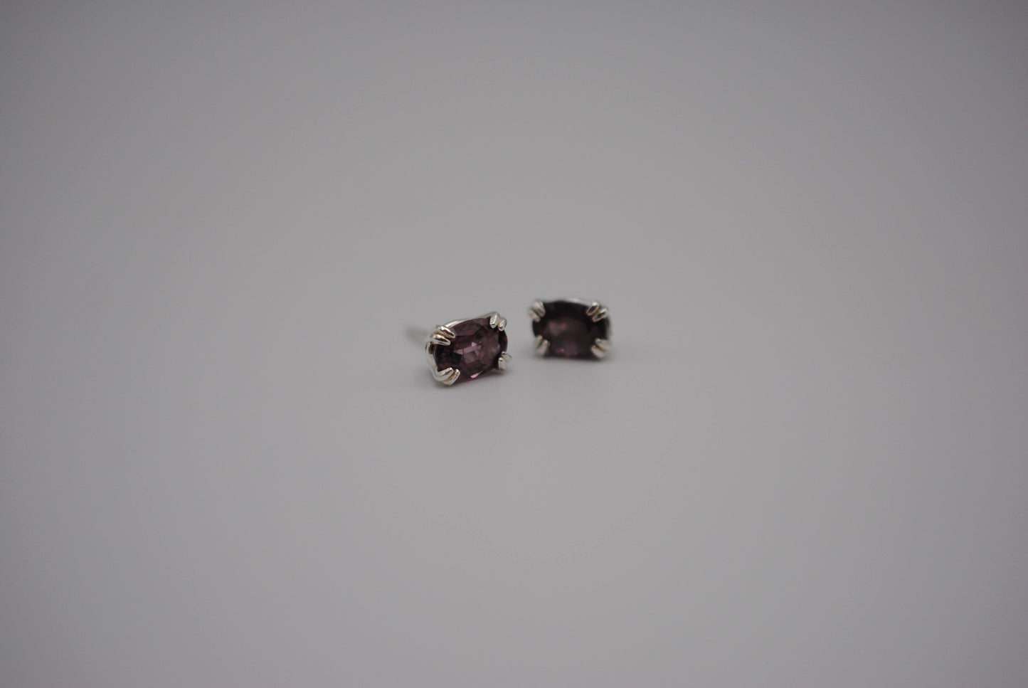 This is our Garnet Post Earrings: Oval Cut, Malaia, Silver, Double Prong Setting.