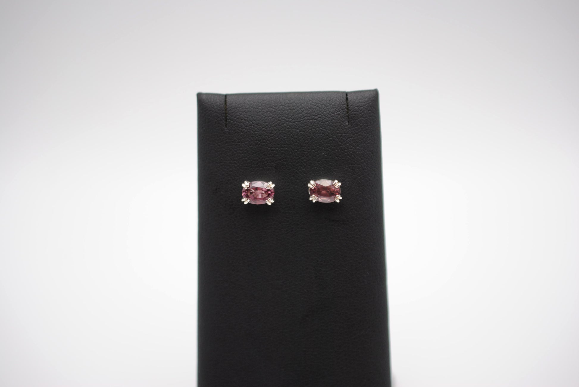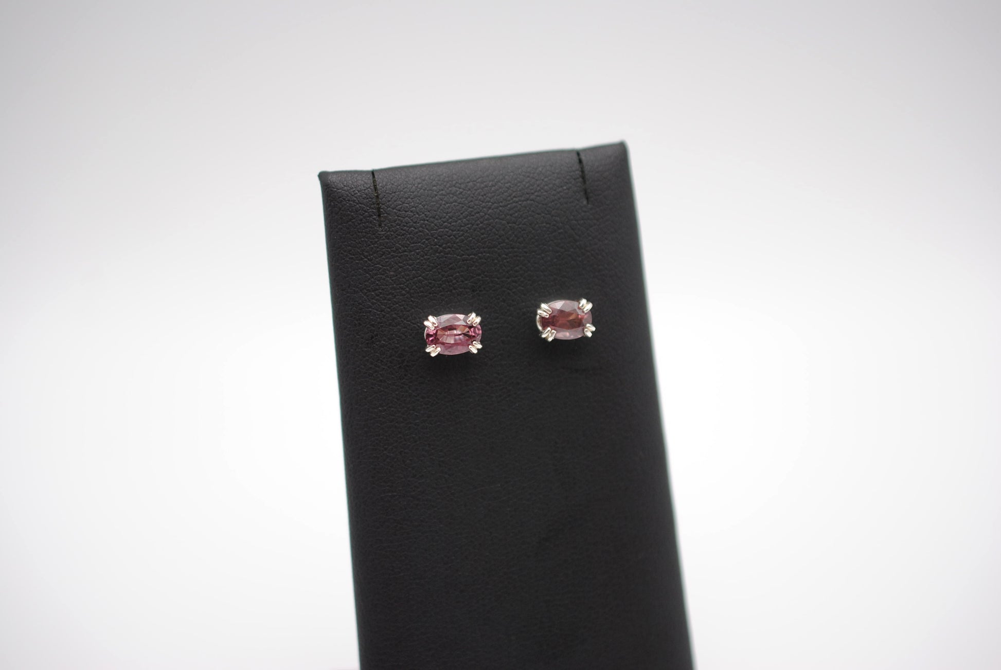 They feature ethically sourced 7 x 5mm oval cut garnets. These are malaia garnets, pink or orange colored.