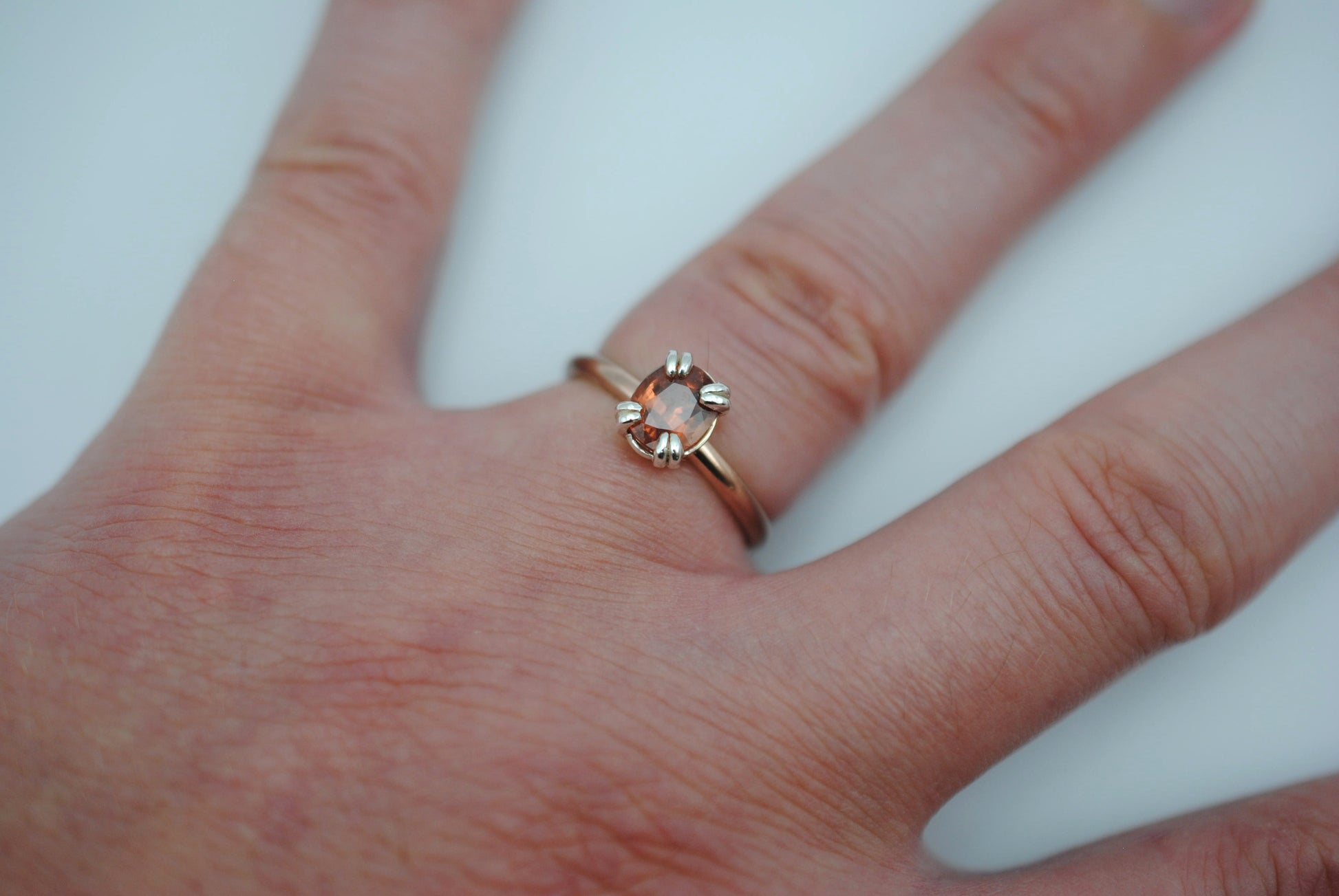Garnet Ring: Oval Cut, Rose Gold Fill, Double Prong Silver Setting