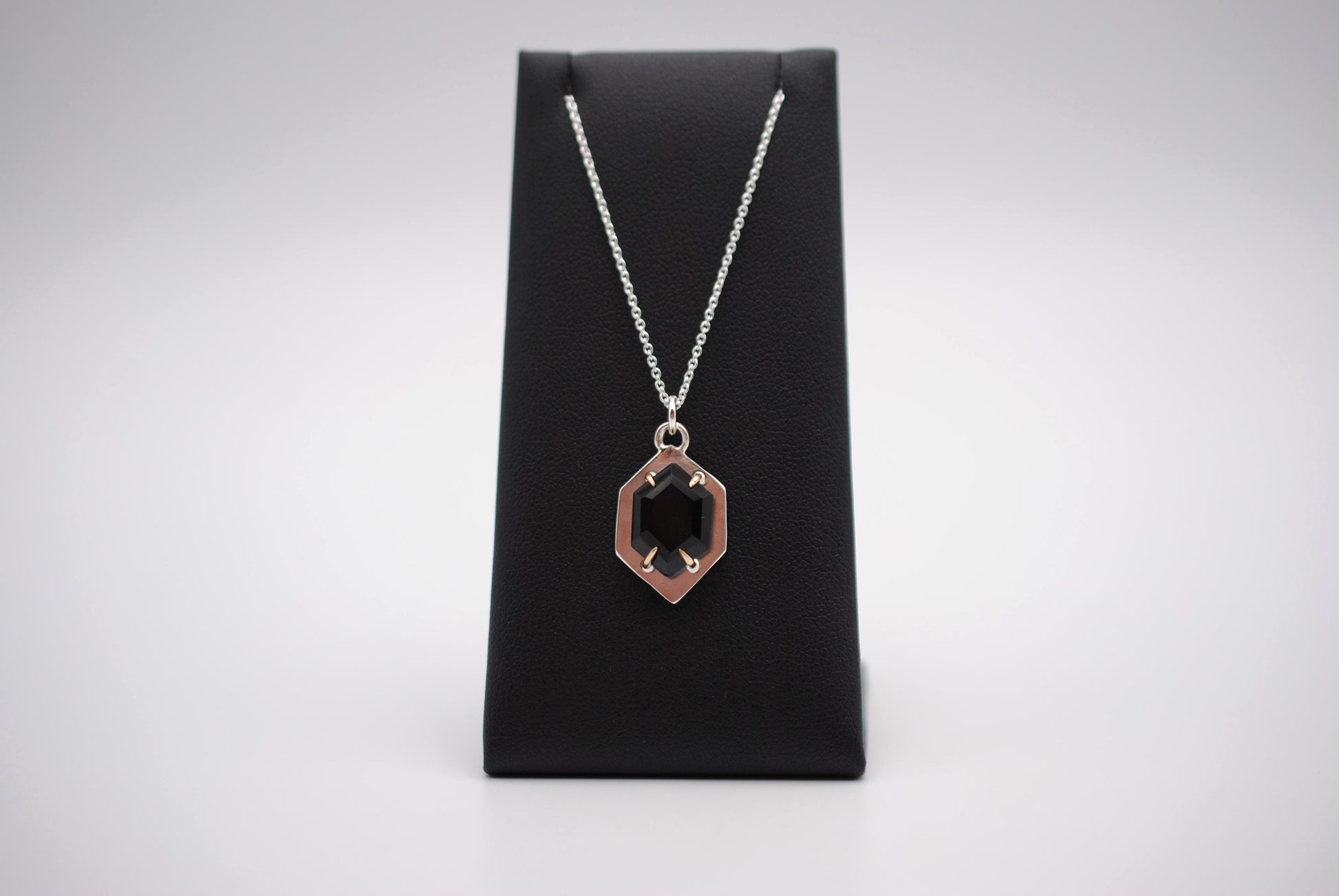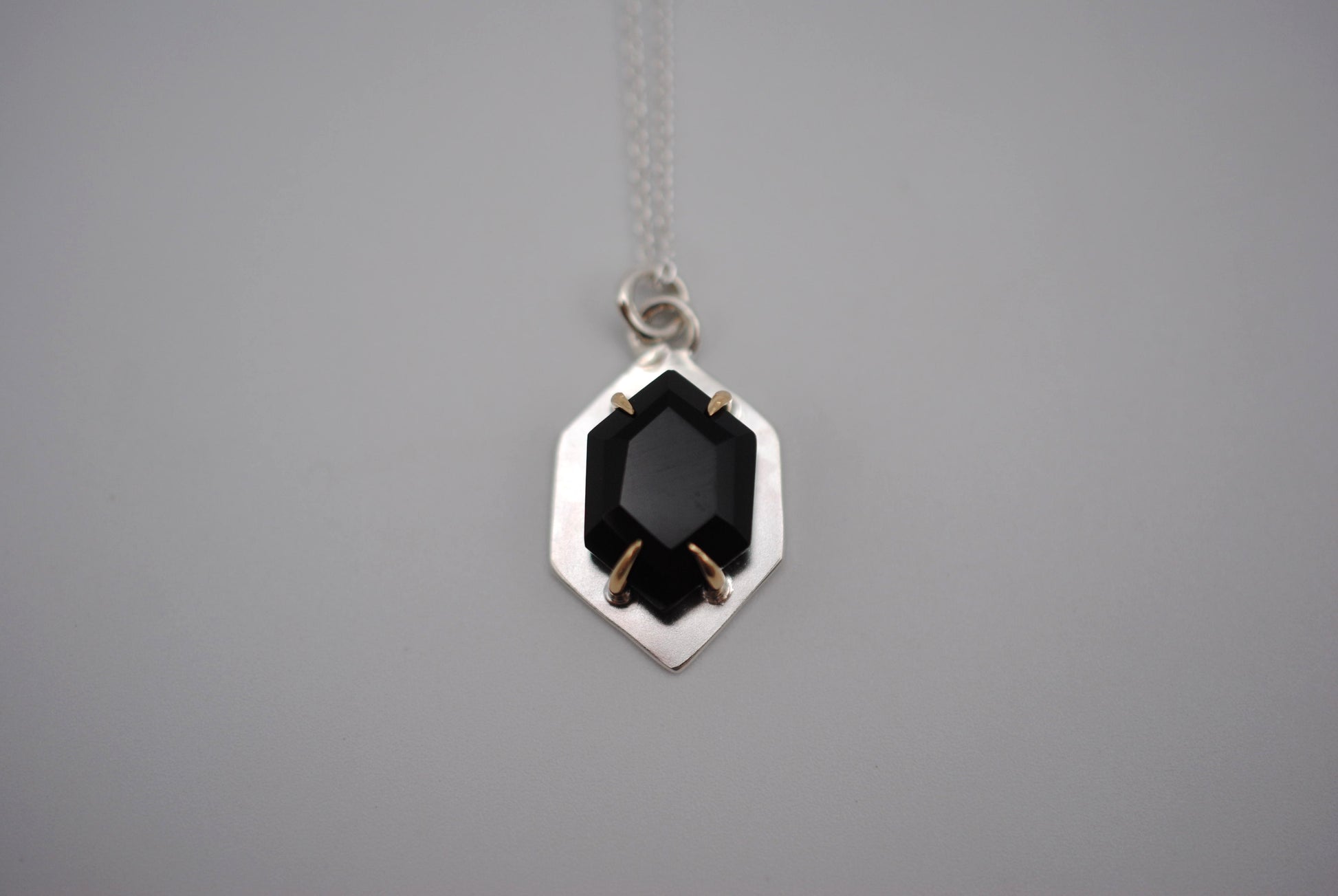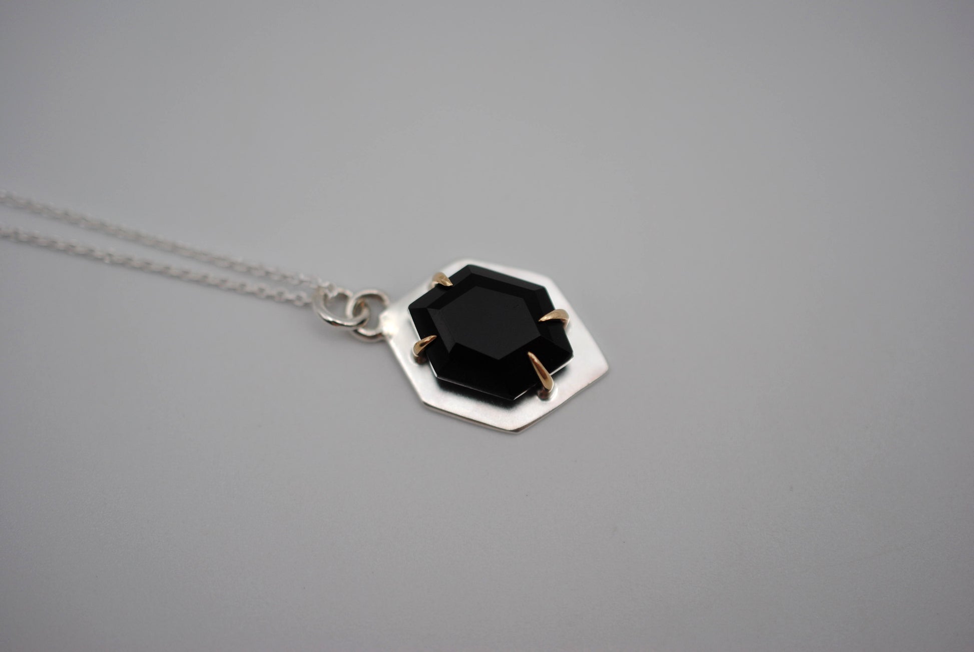 The pendant features a 14 x 9mm hexagon cut onyx.
