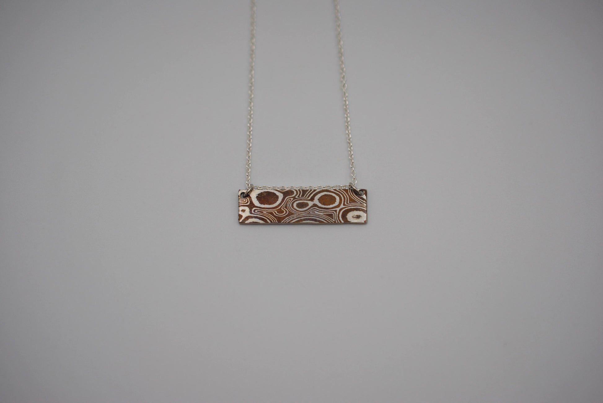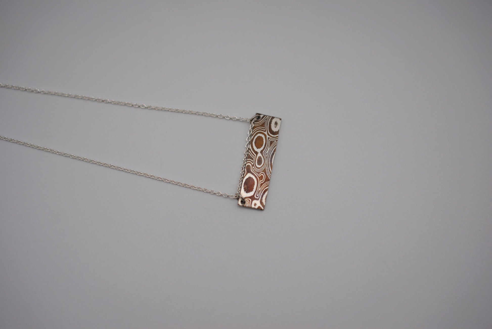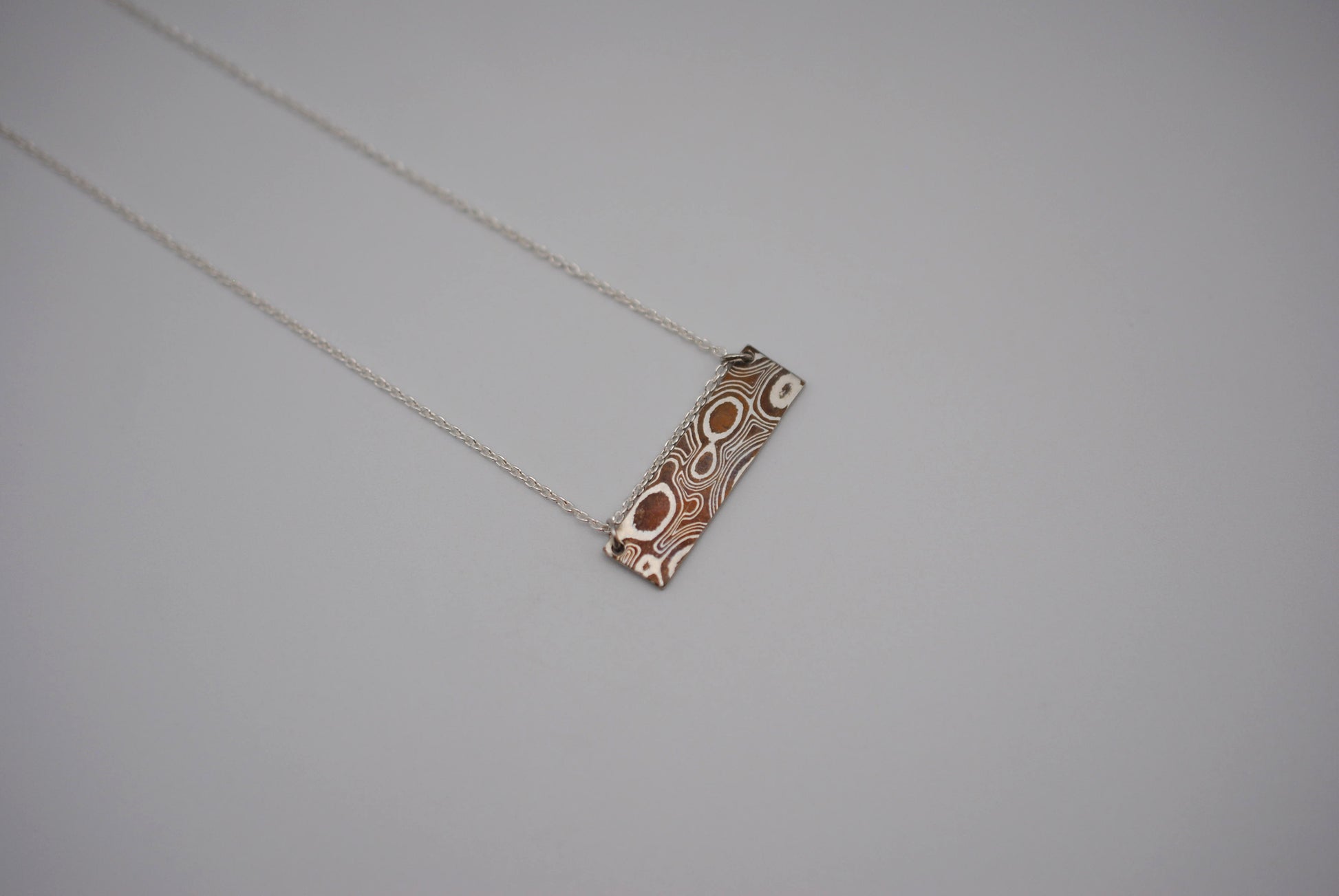 Mokume Gane Bar Necklace: Silver and Copper, Cable Chain