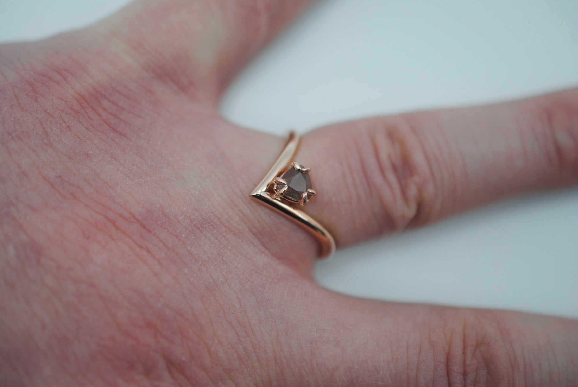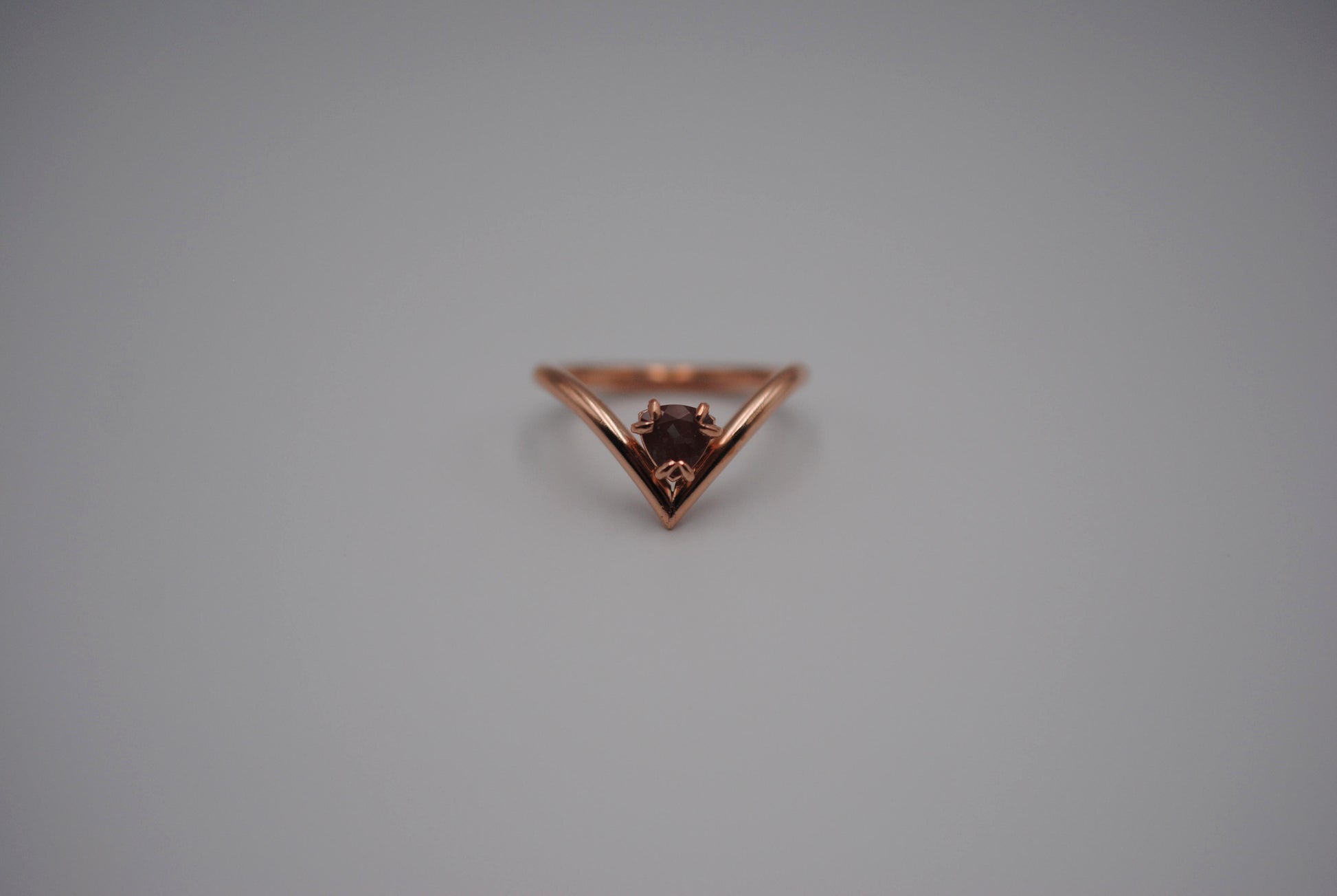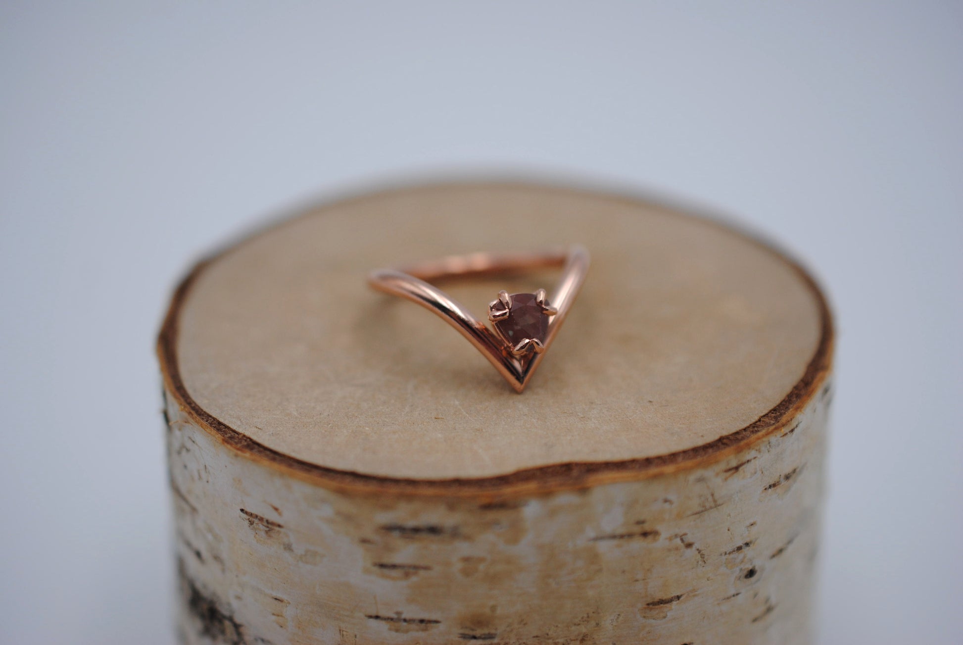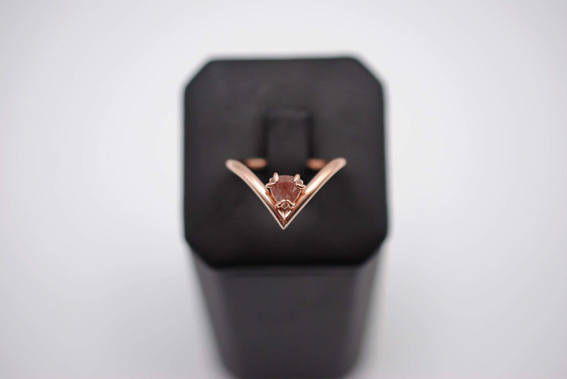 Oregon Sunstone Ring: Trillion Cut, Chevron, Rose Gold Fill