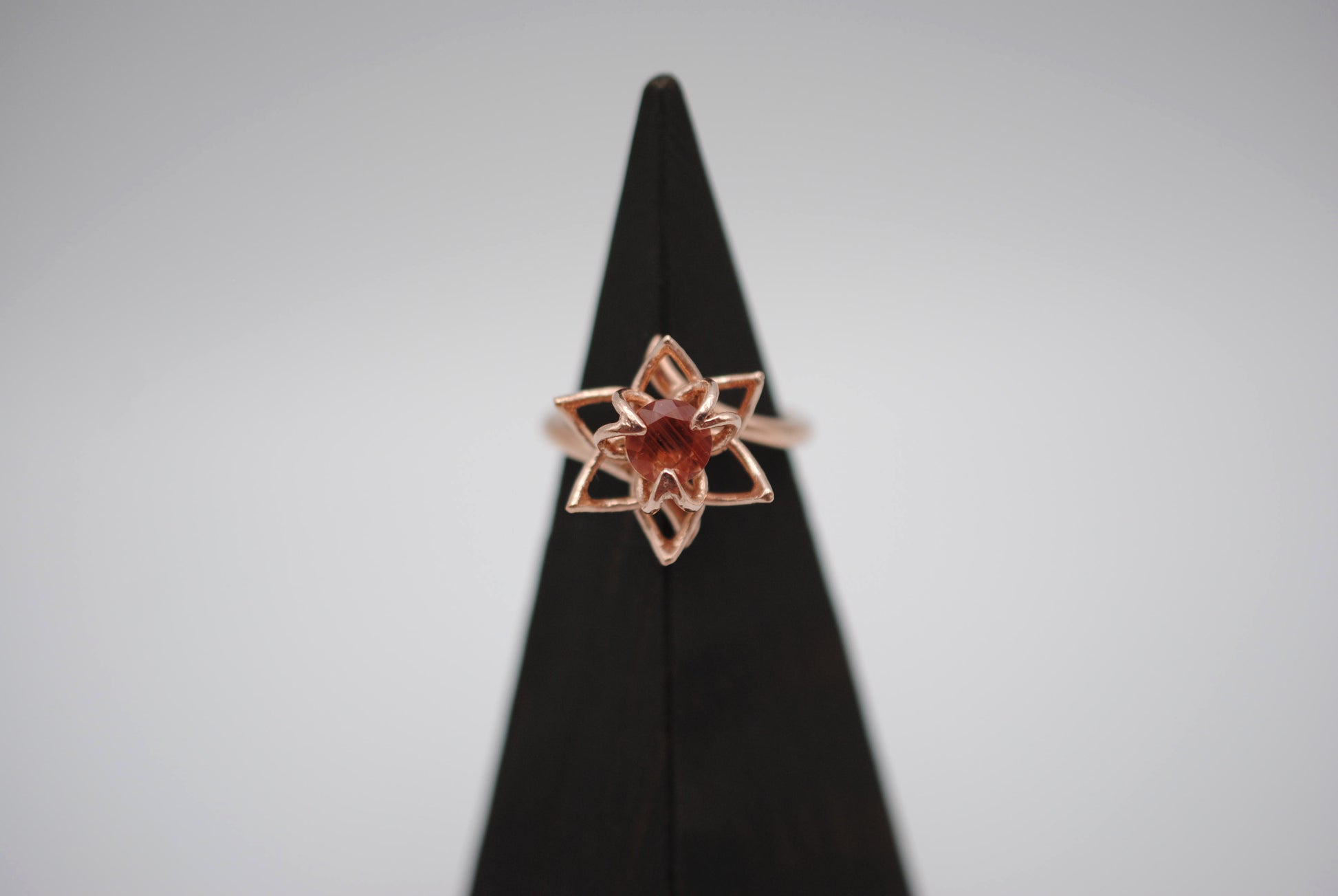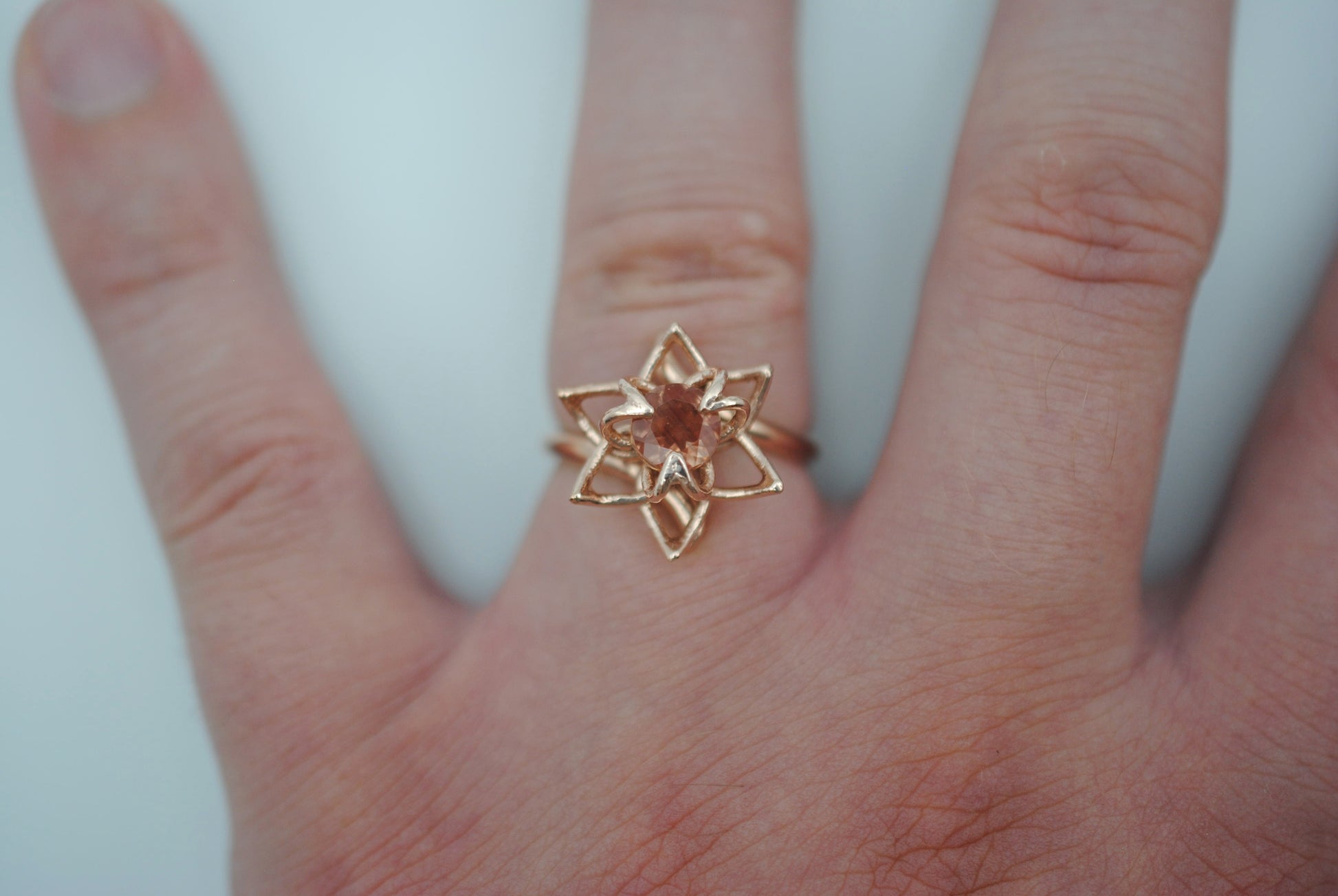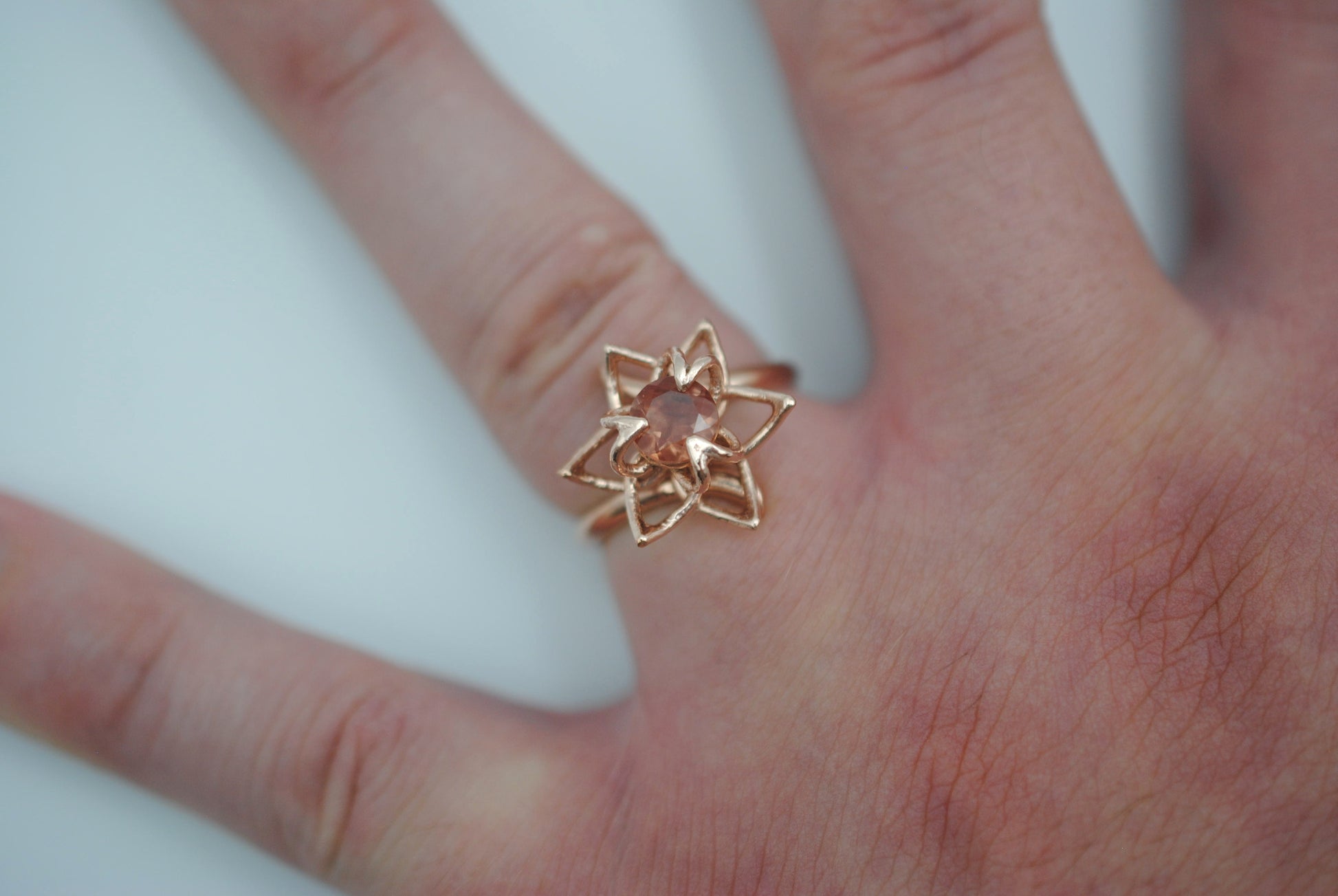 Oregon Sunstone Ring: Round Cut, Sunflower, Rose Gold Fill