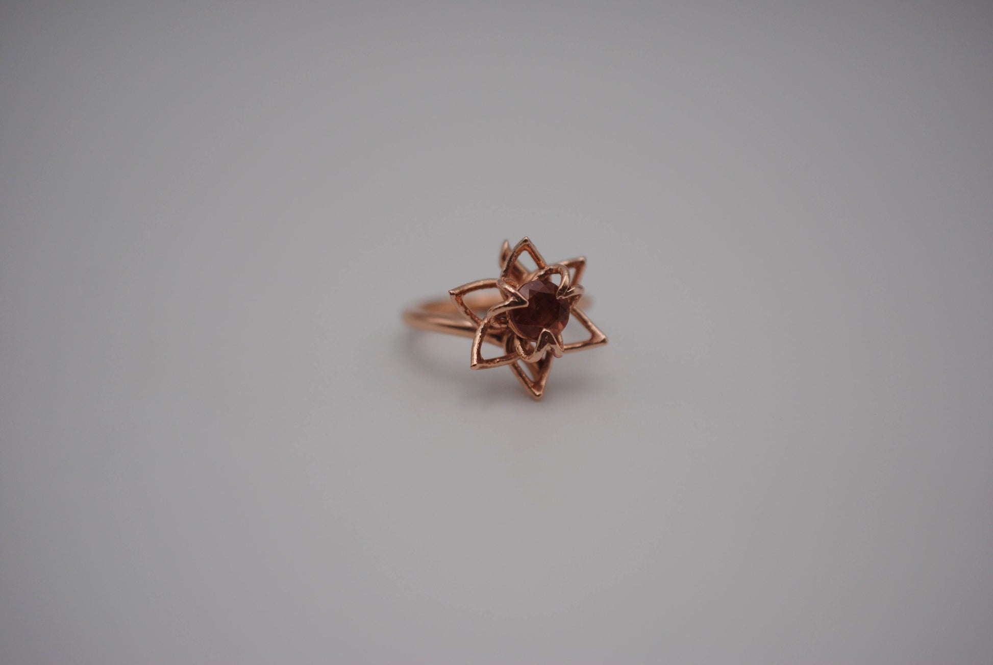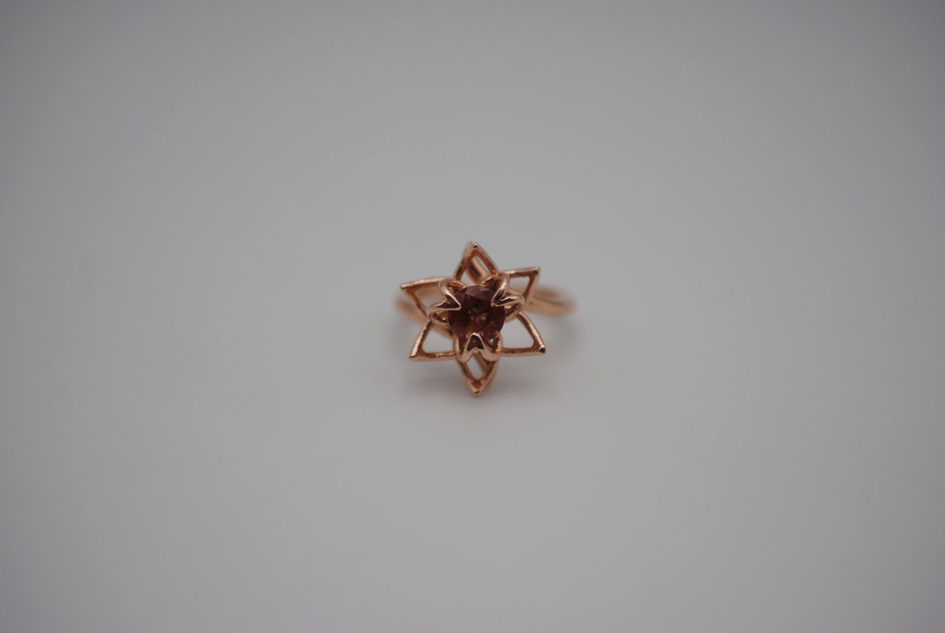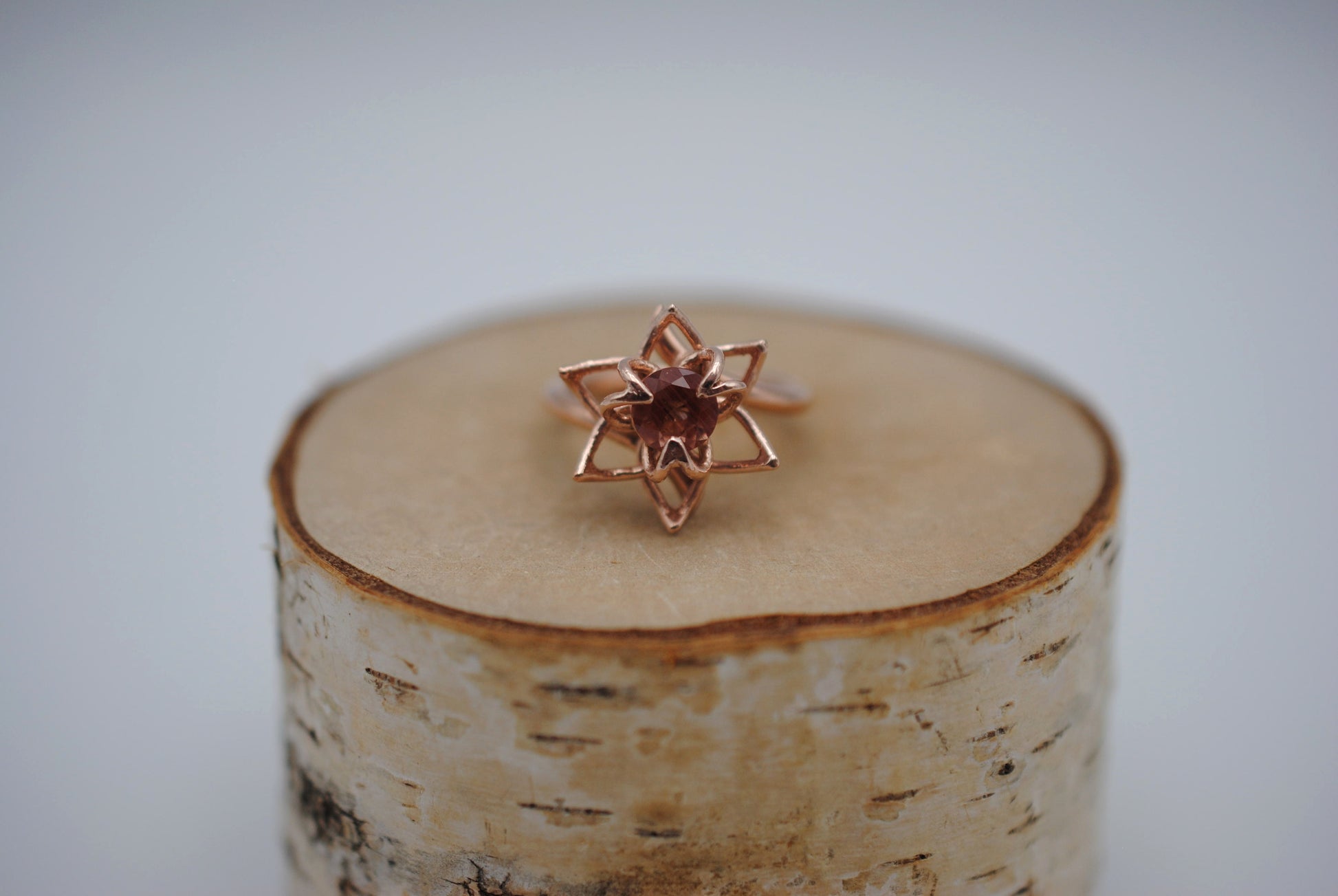 Oregon Sunstone Ring: Round Cut, Sunflower, Rose Gold Fill