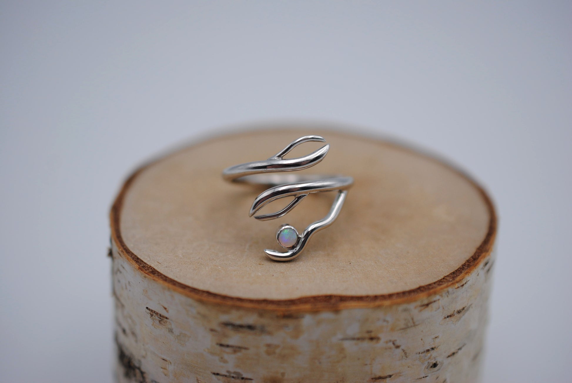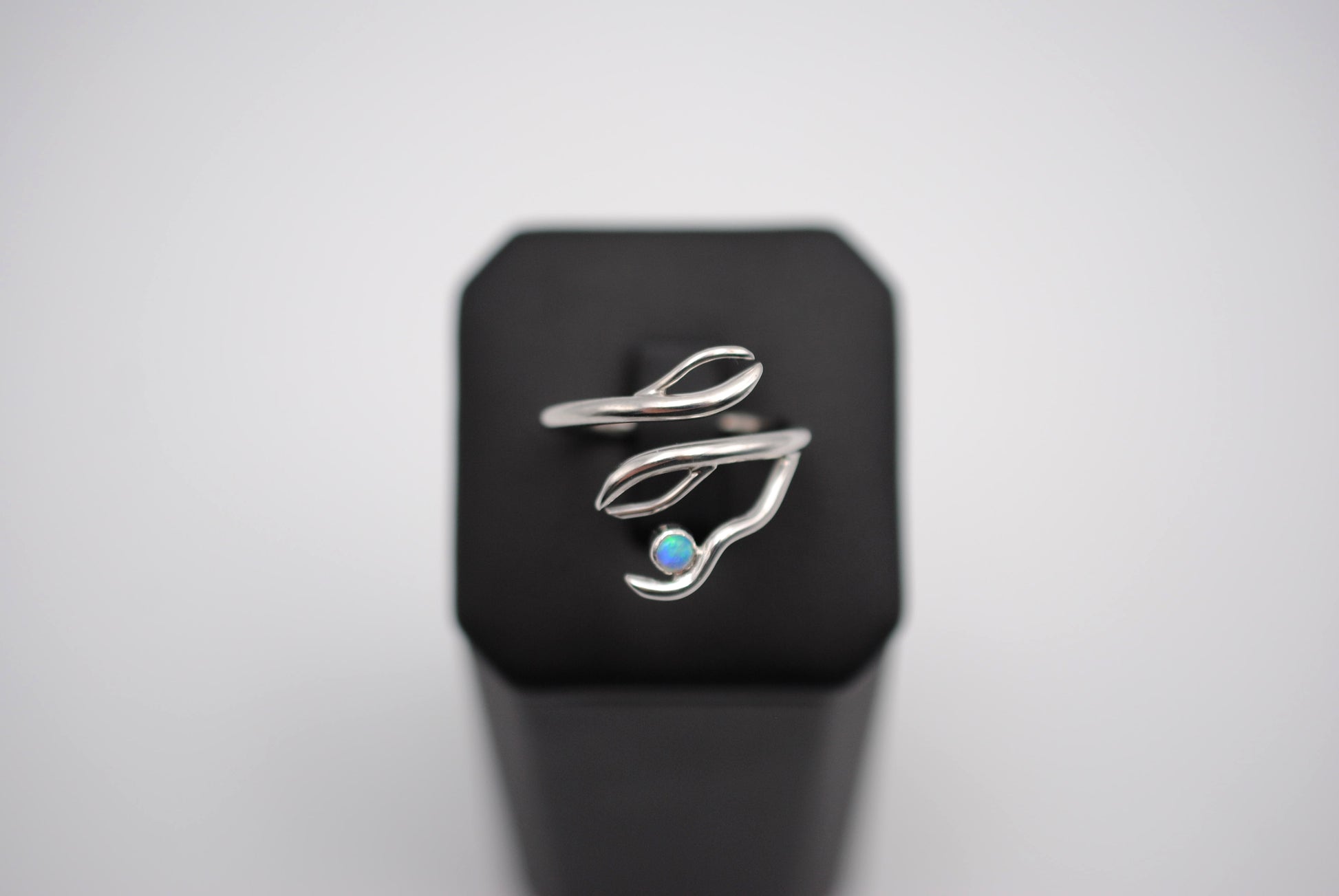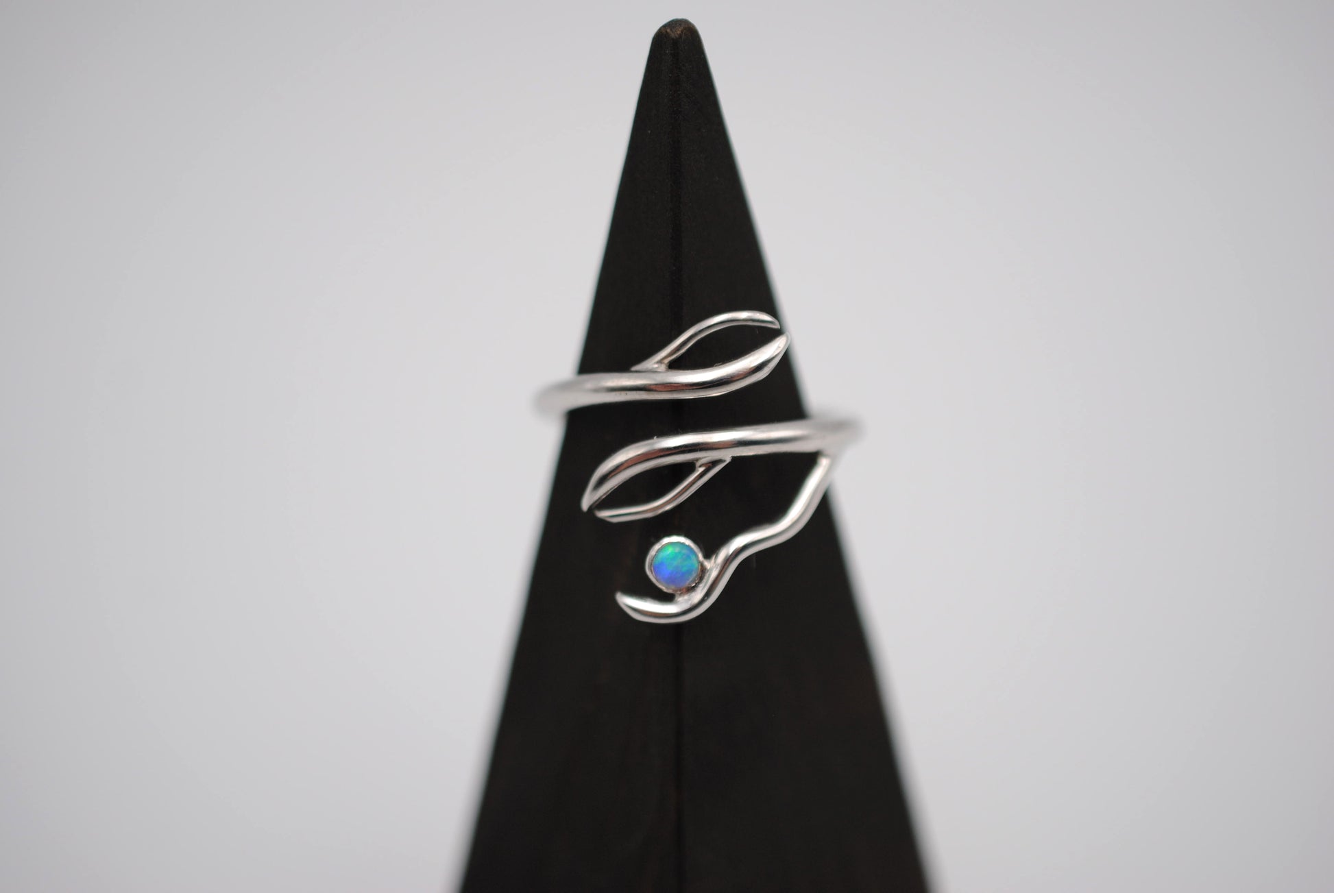 The ring features a 3mm natural Australian opal. It is bezel set.