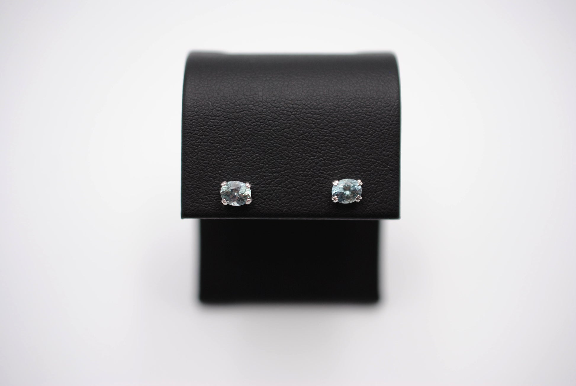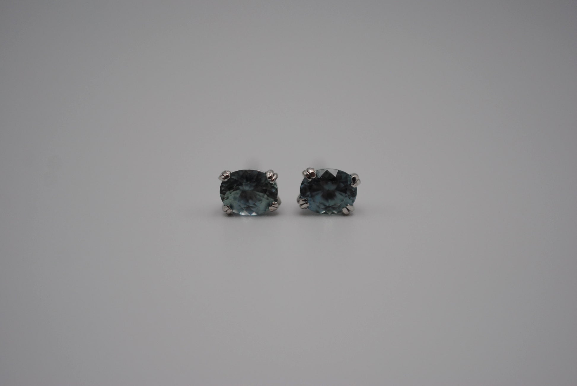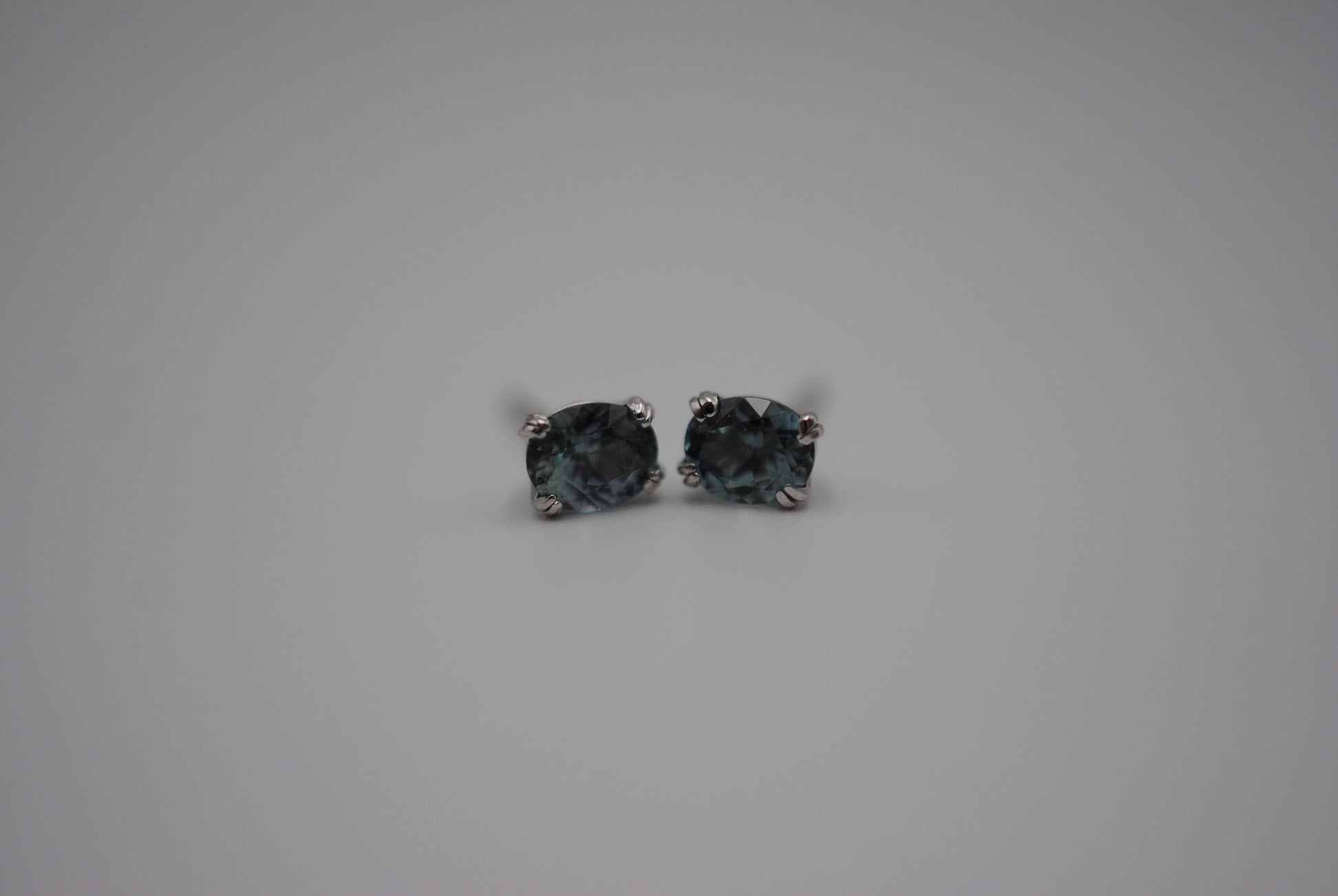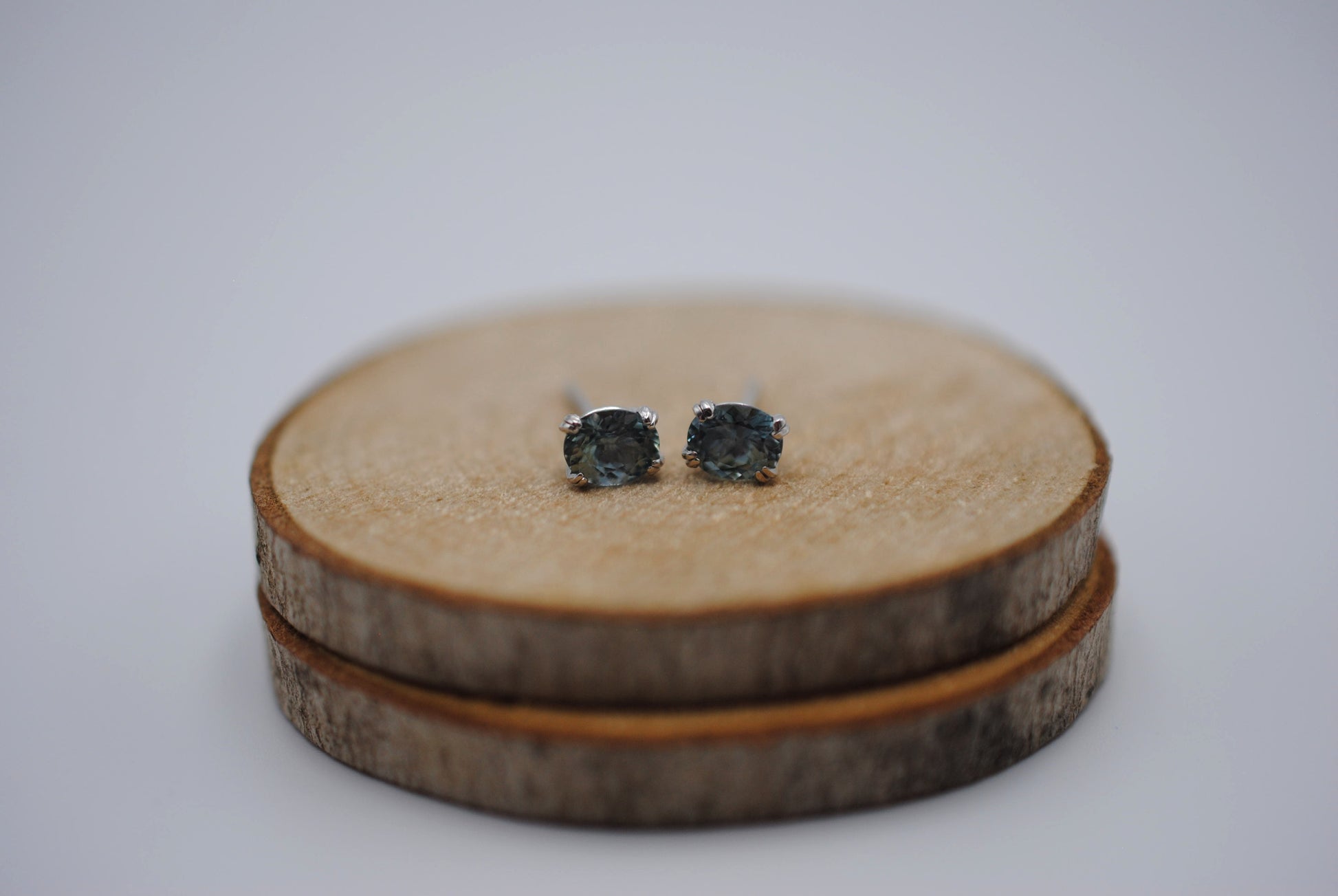 They feature a natural oval cut Montana sapphire. They're 5mm by 4mm.
