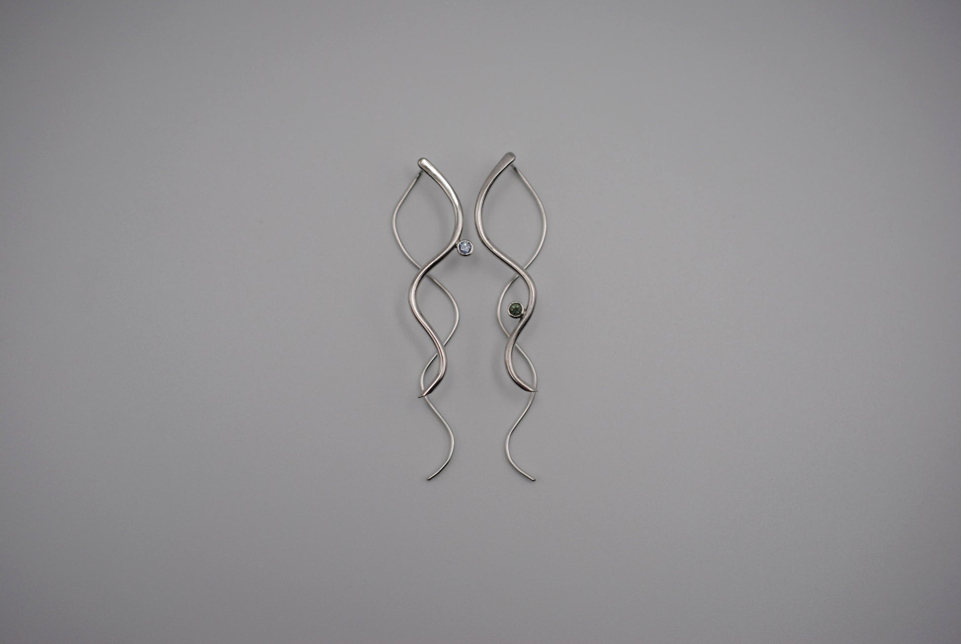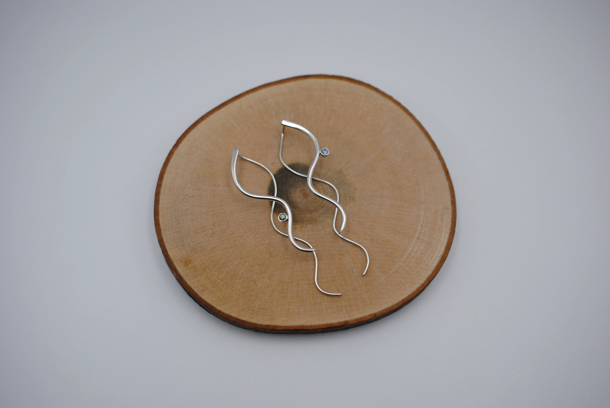 These earrings are completely handmade: hand fabricated, soldered, cut, drilled, filed, sanded, and finished in my one-woman home studio shop.