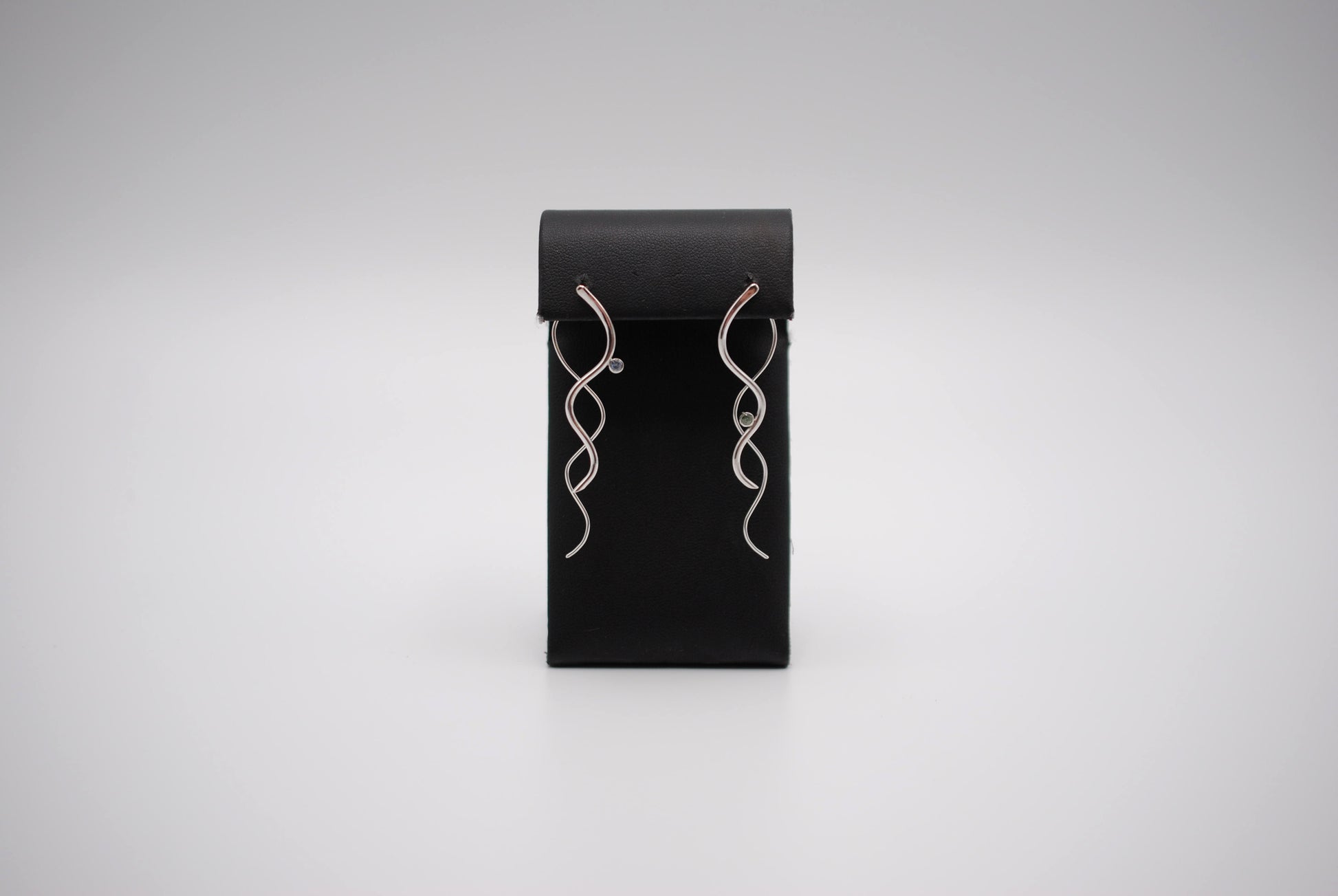 These are our Sapphire Earrings: Infinity, Round Cut, Rhodium Finished.