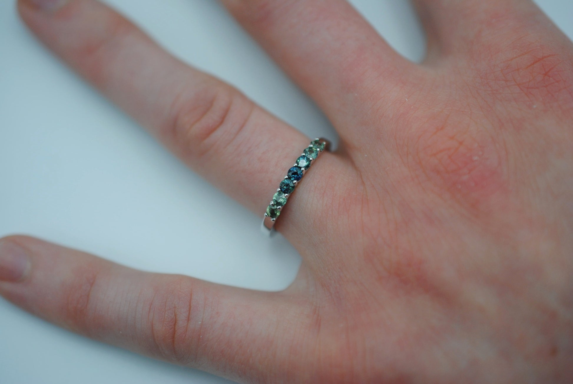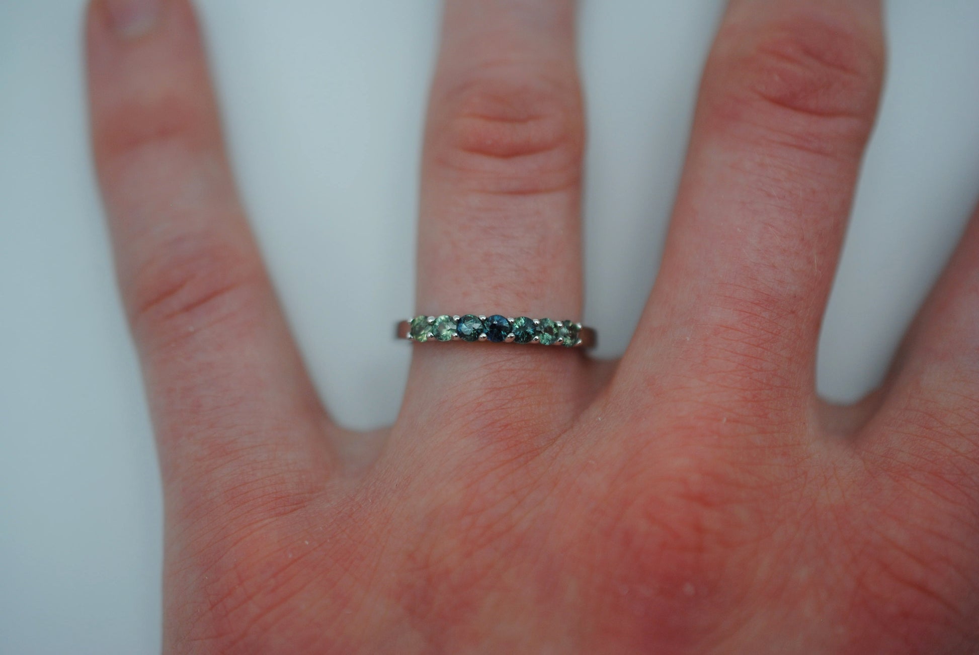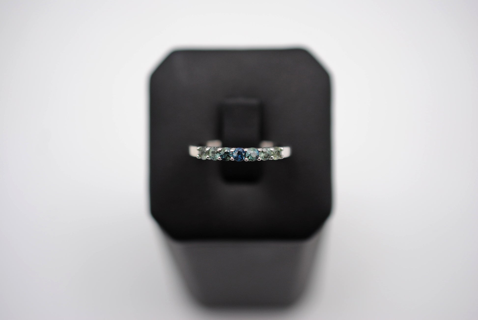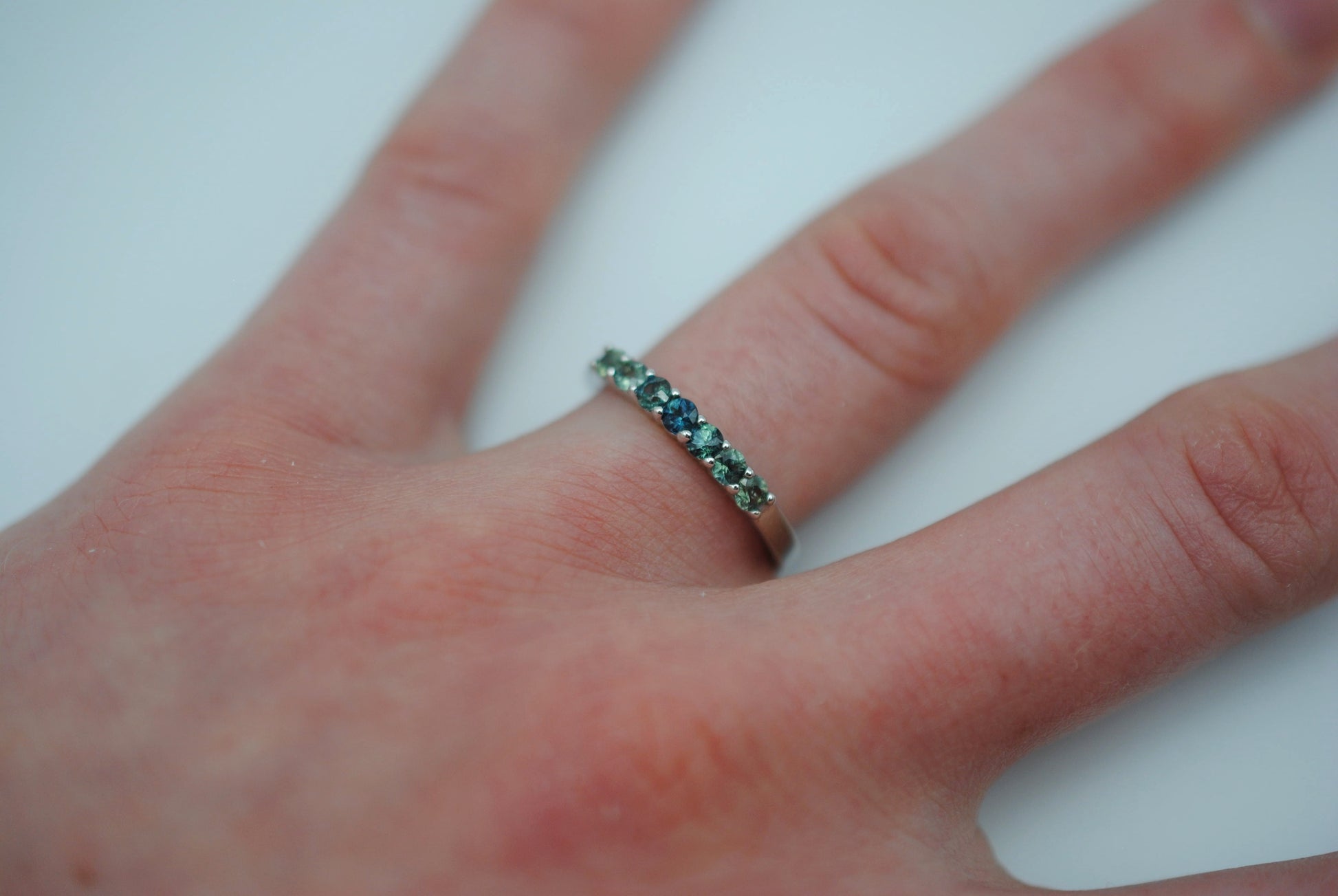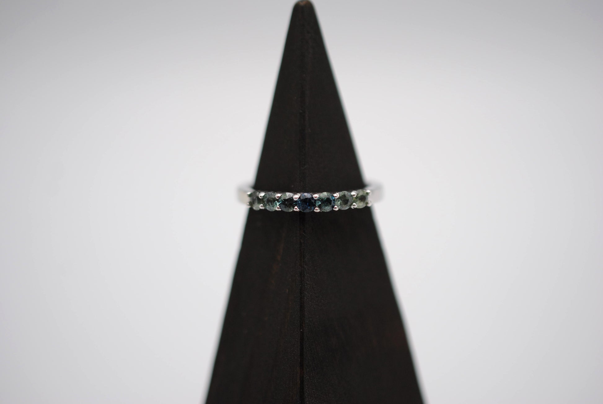 It features seven ethically sourced round cut 3mm sapphires.