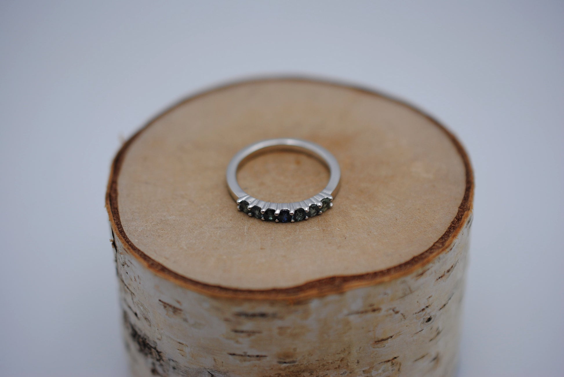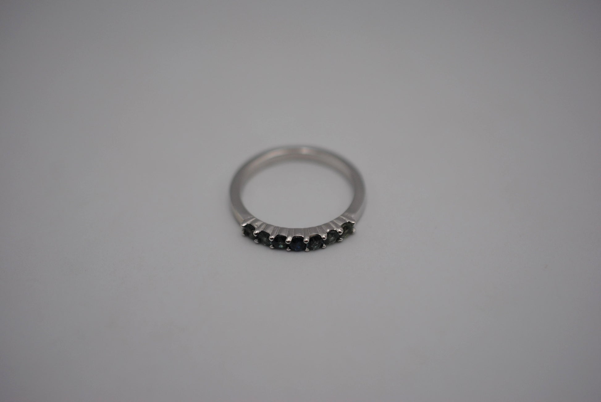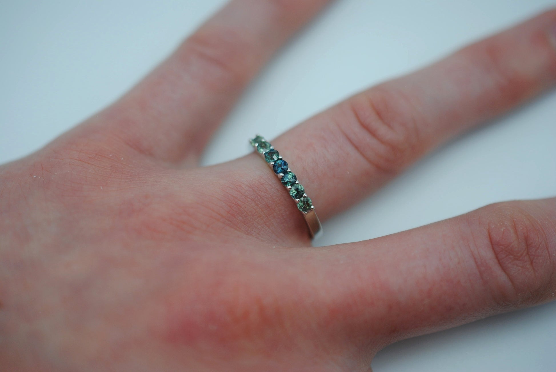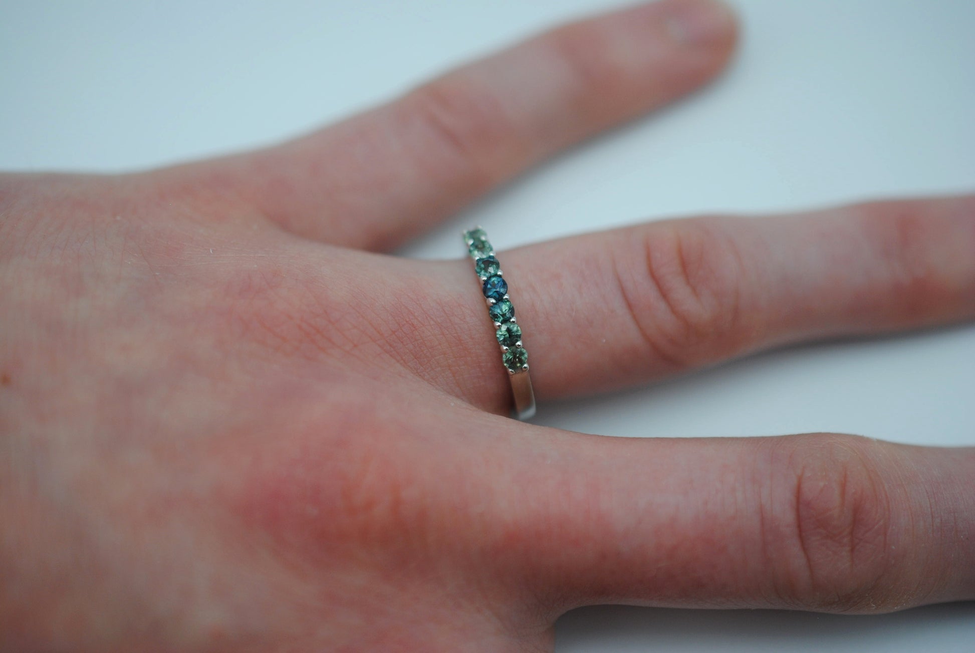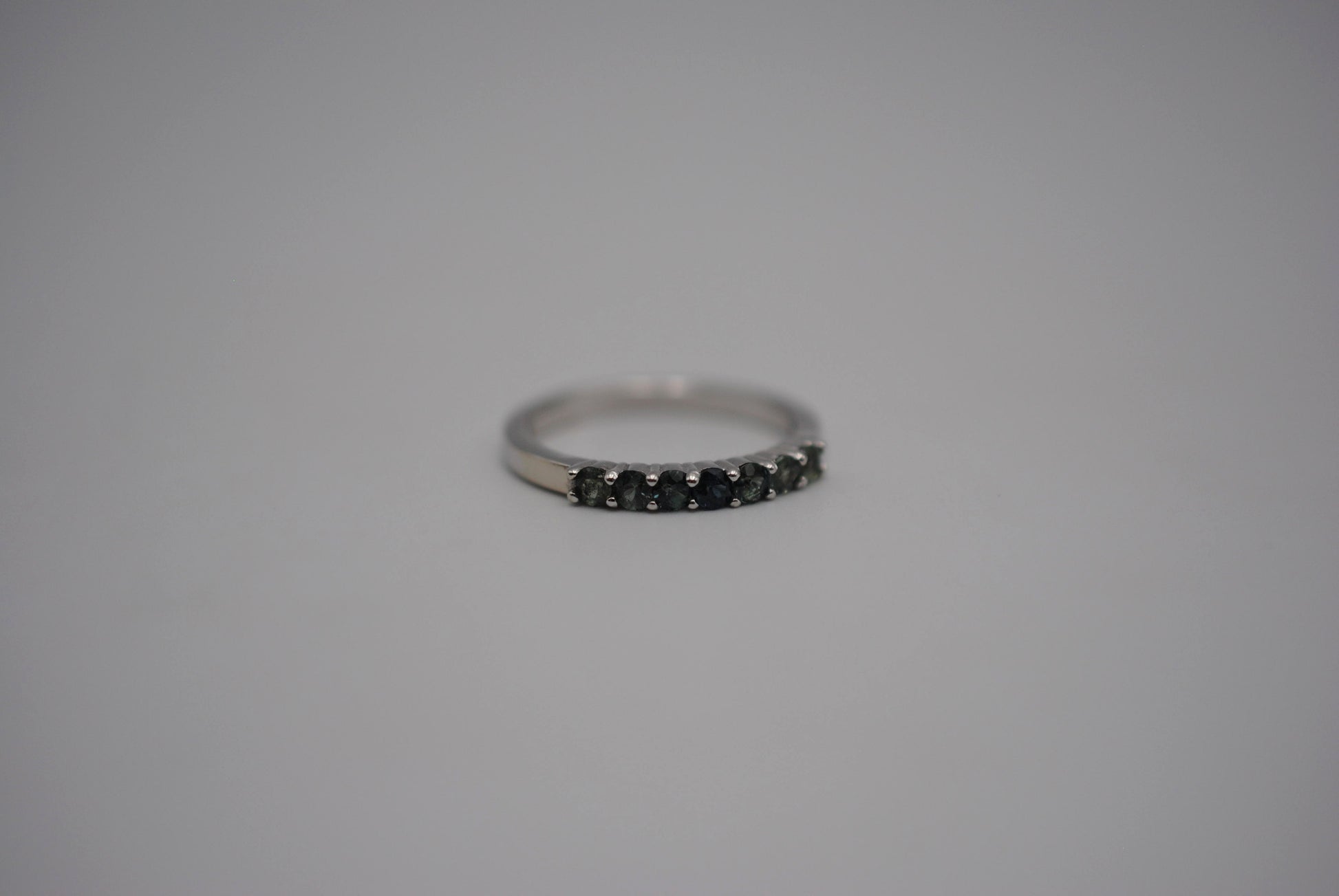 It features seven ethically sourced round cut 3mm sapphires.