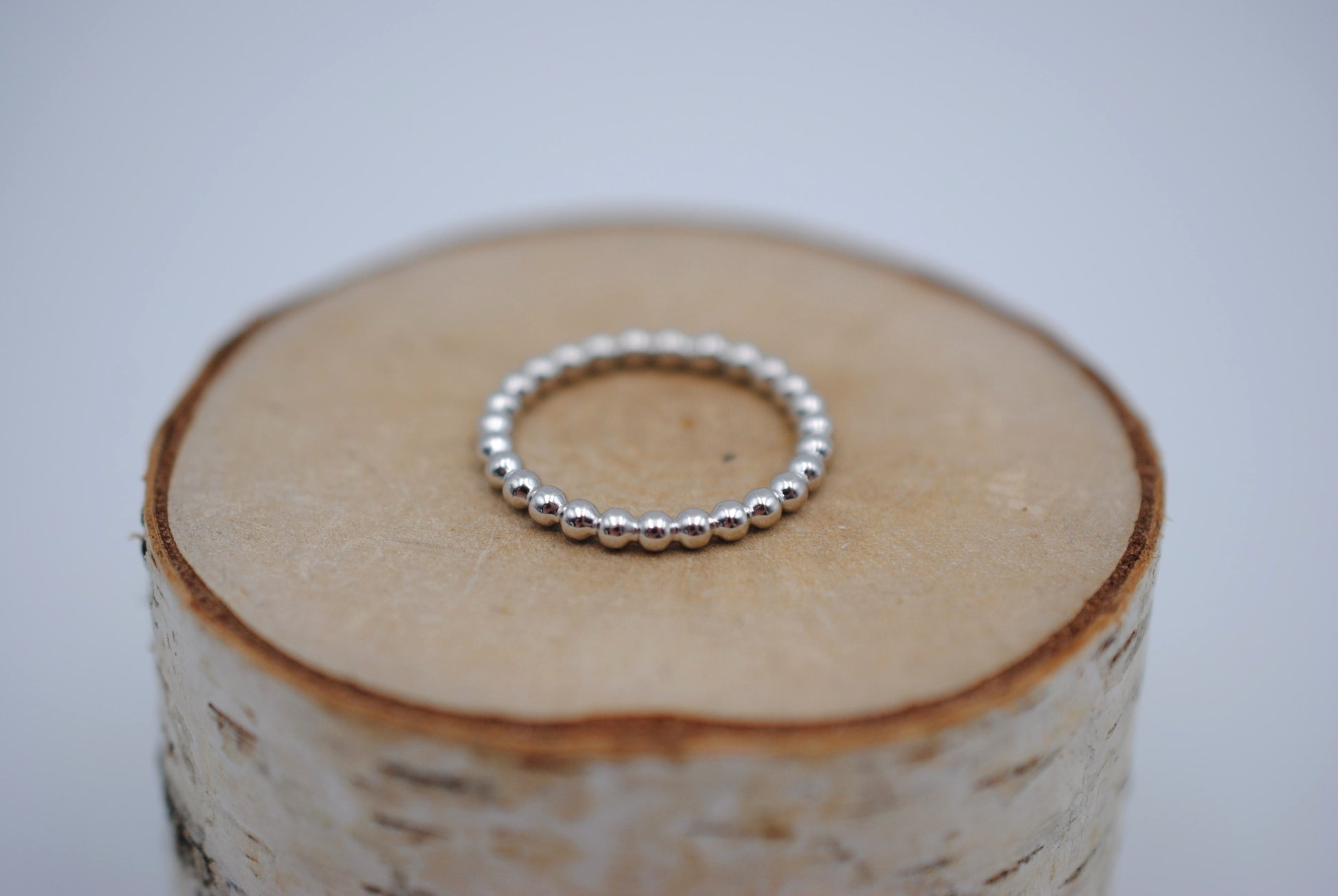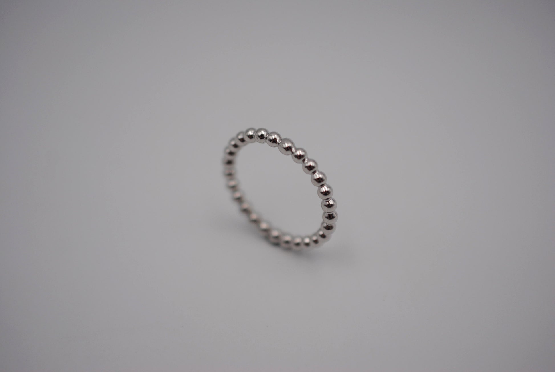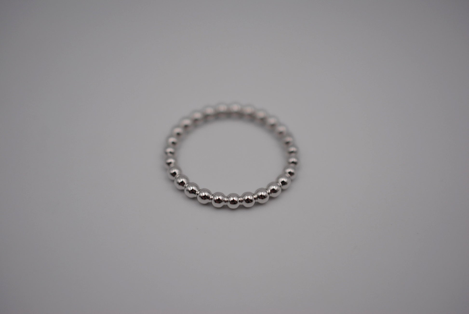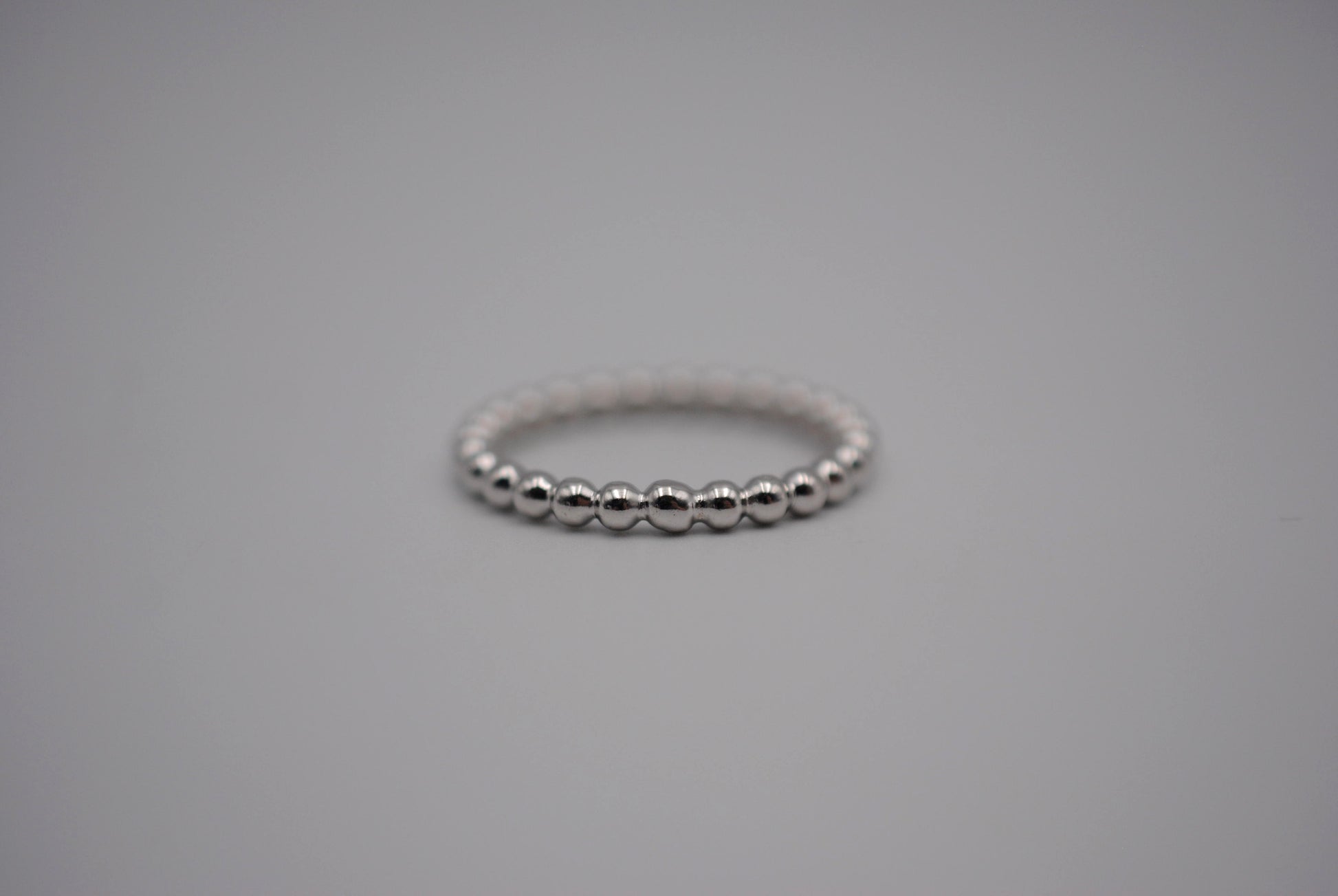 This is our Thick Rhodium Bubble Stacker Ring.