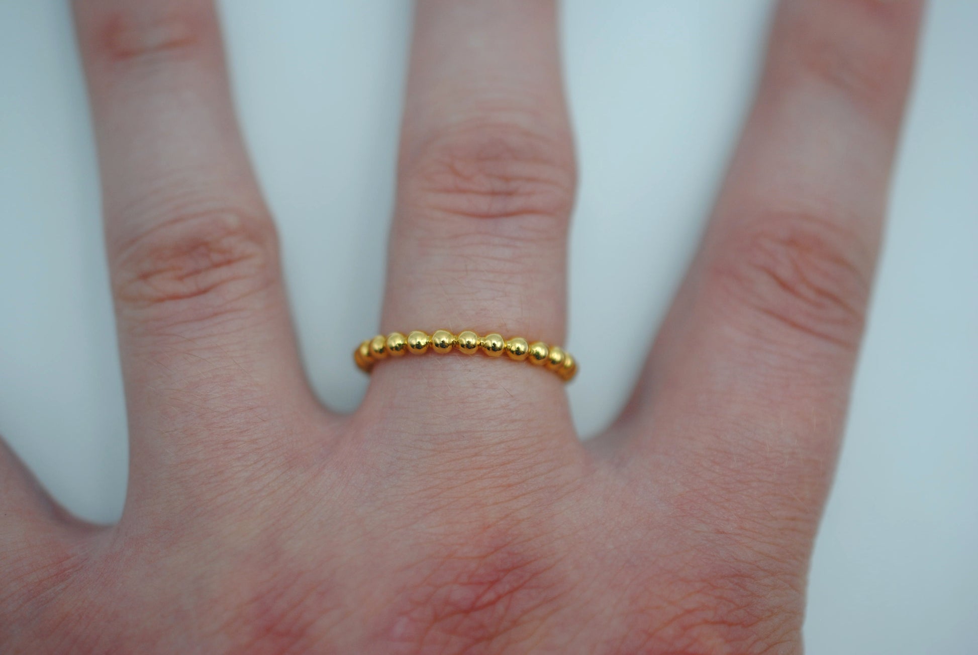 This is our Thick Yellow Gold Bubble Stacker Ring.