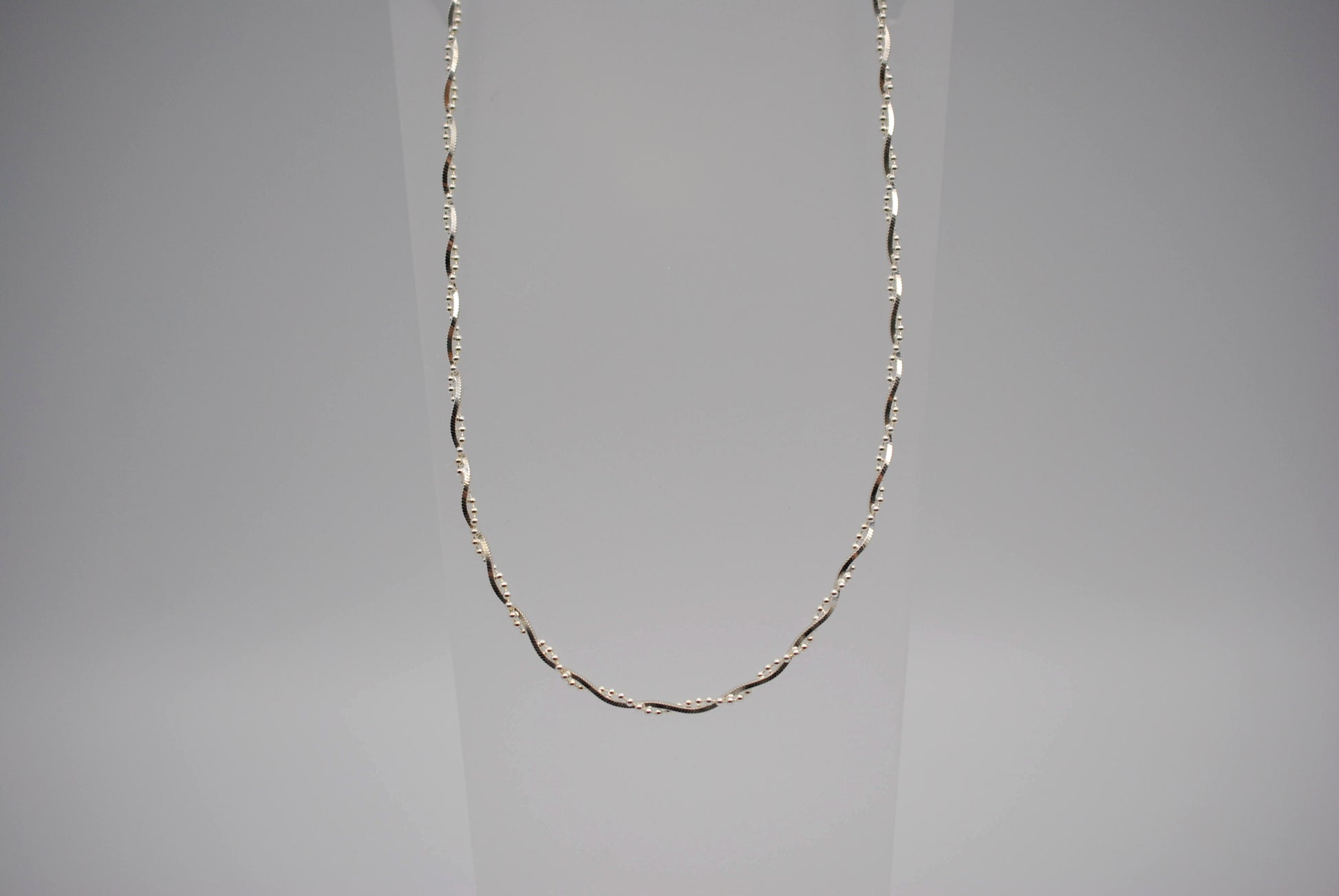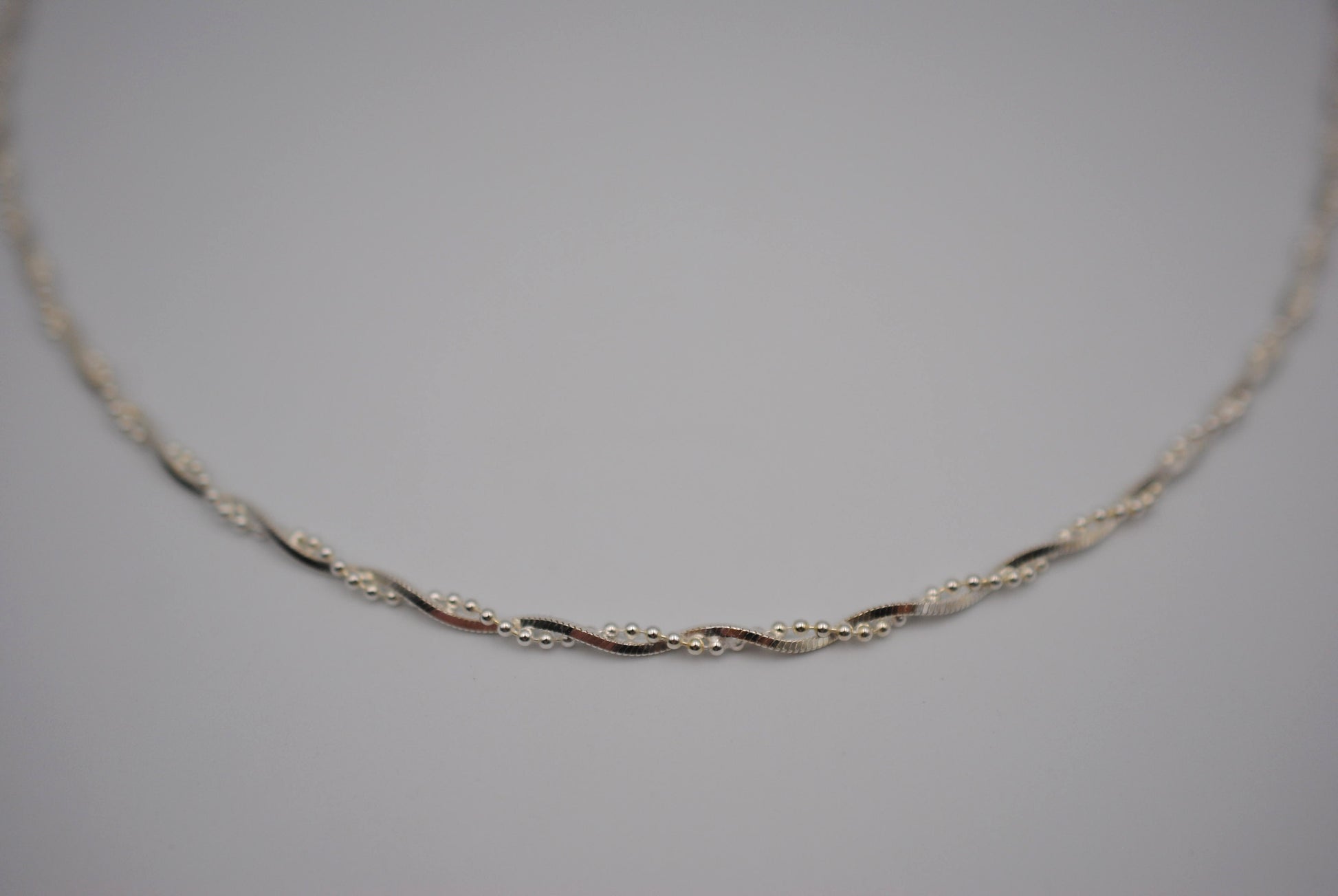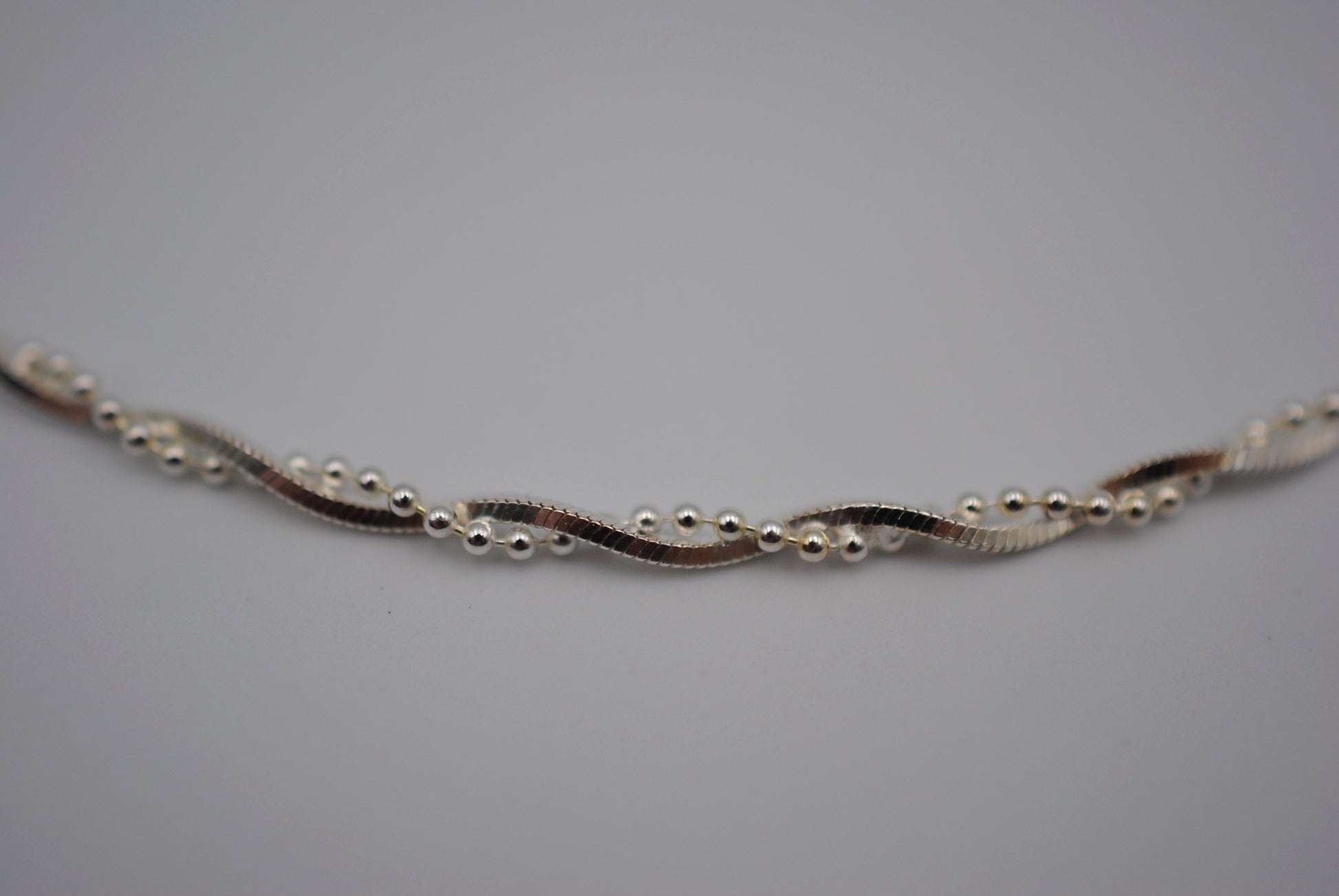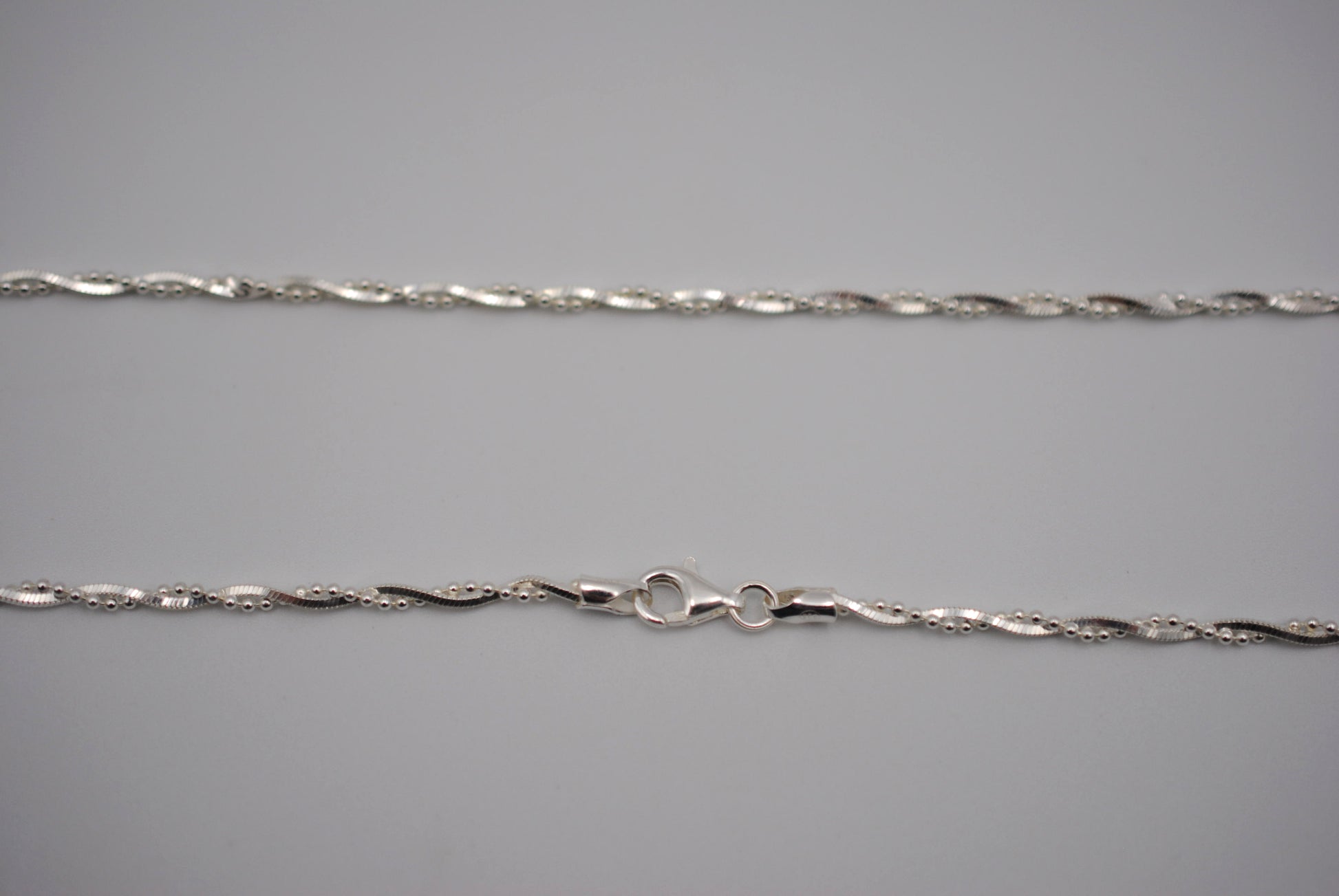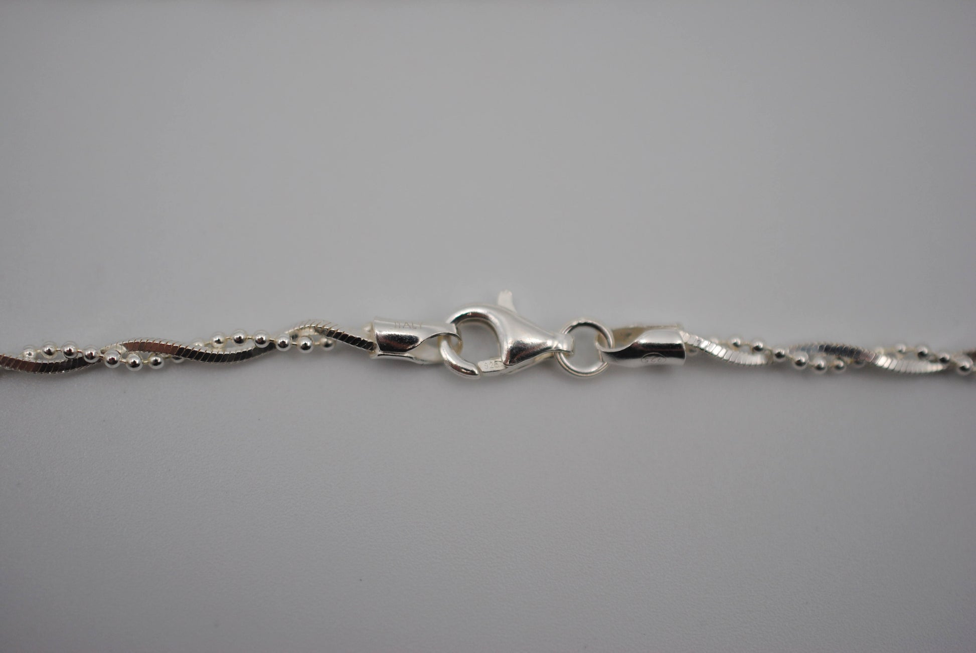 It is sterling silver. It is finished in fine silver. This finish prevents tarnishing.