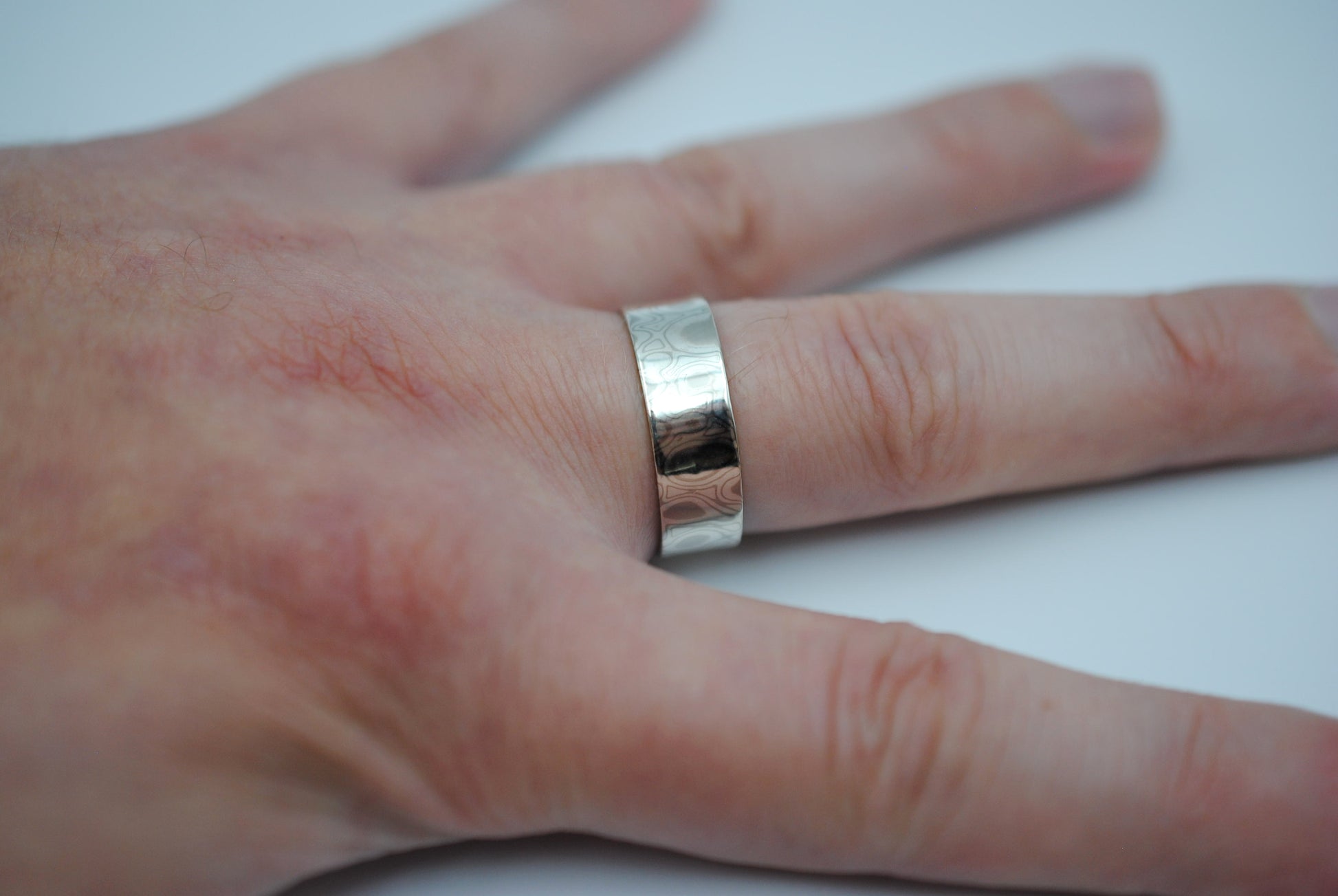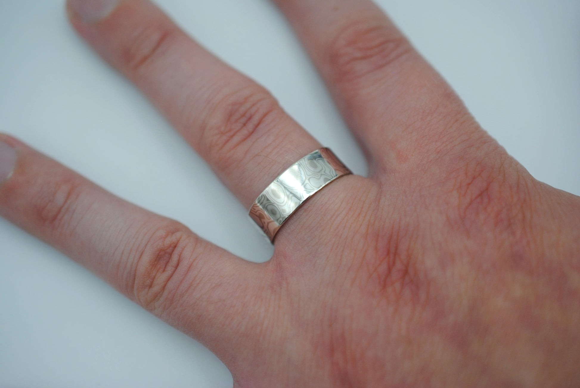 Mokume Gane Ring Band: Palladium White Gold and Sterling Silver, 7mm Width