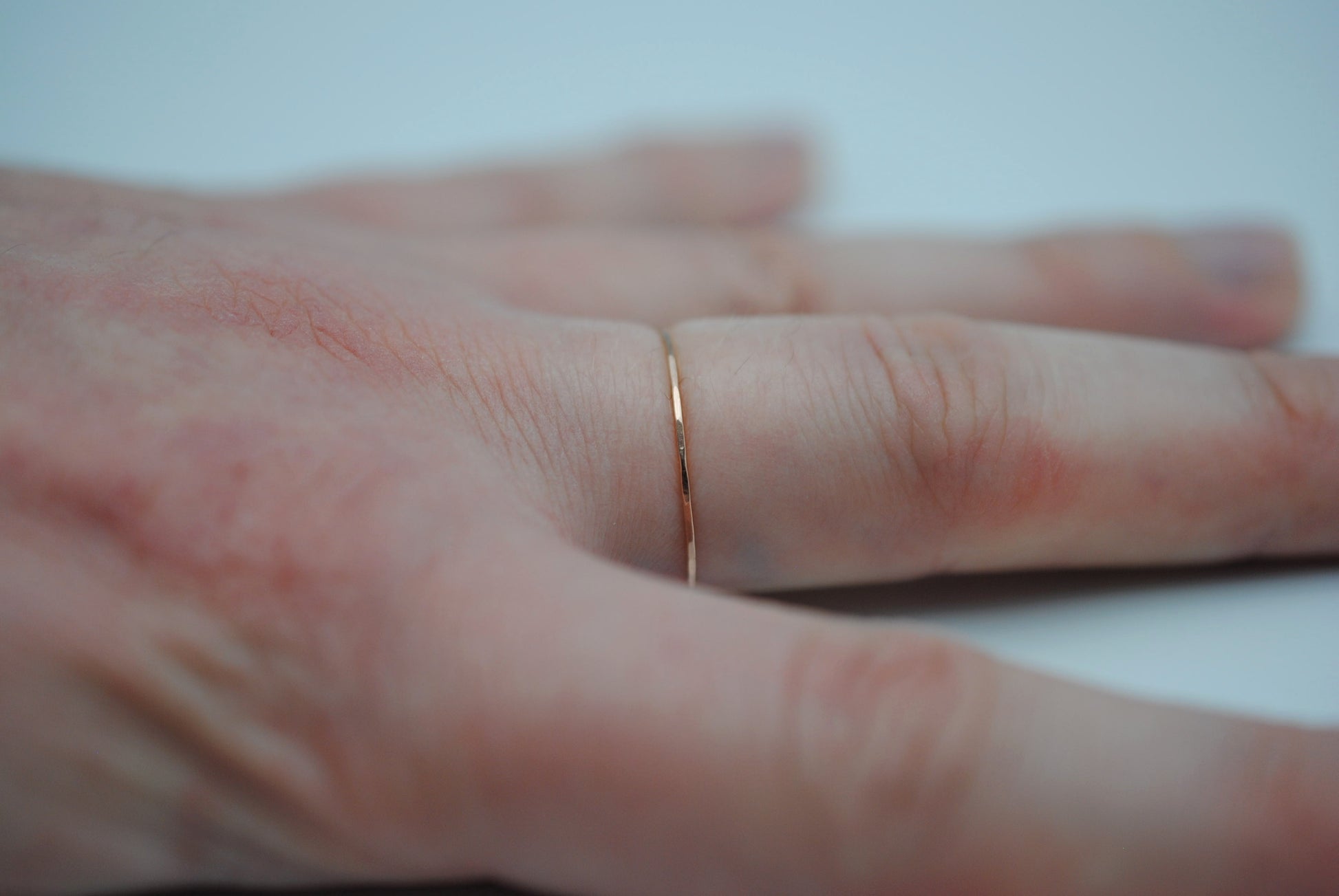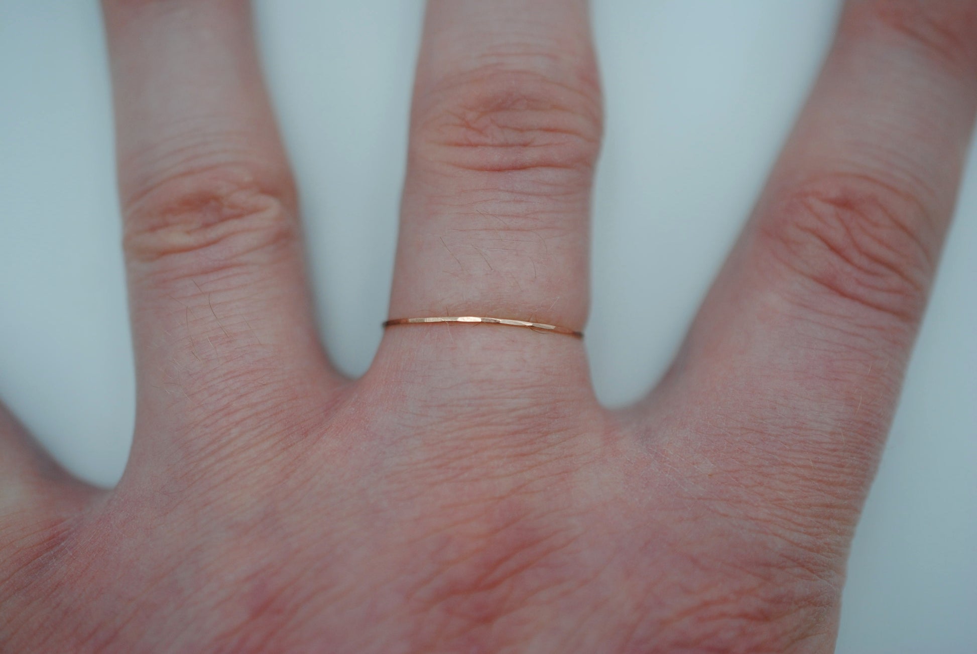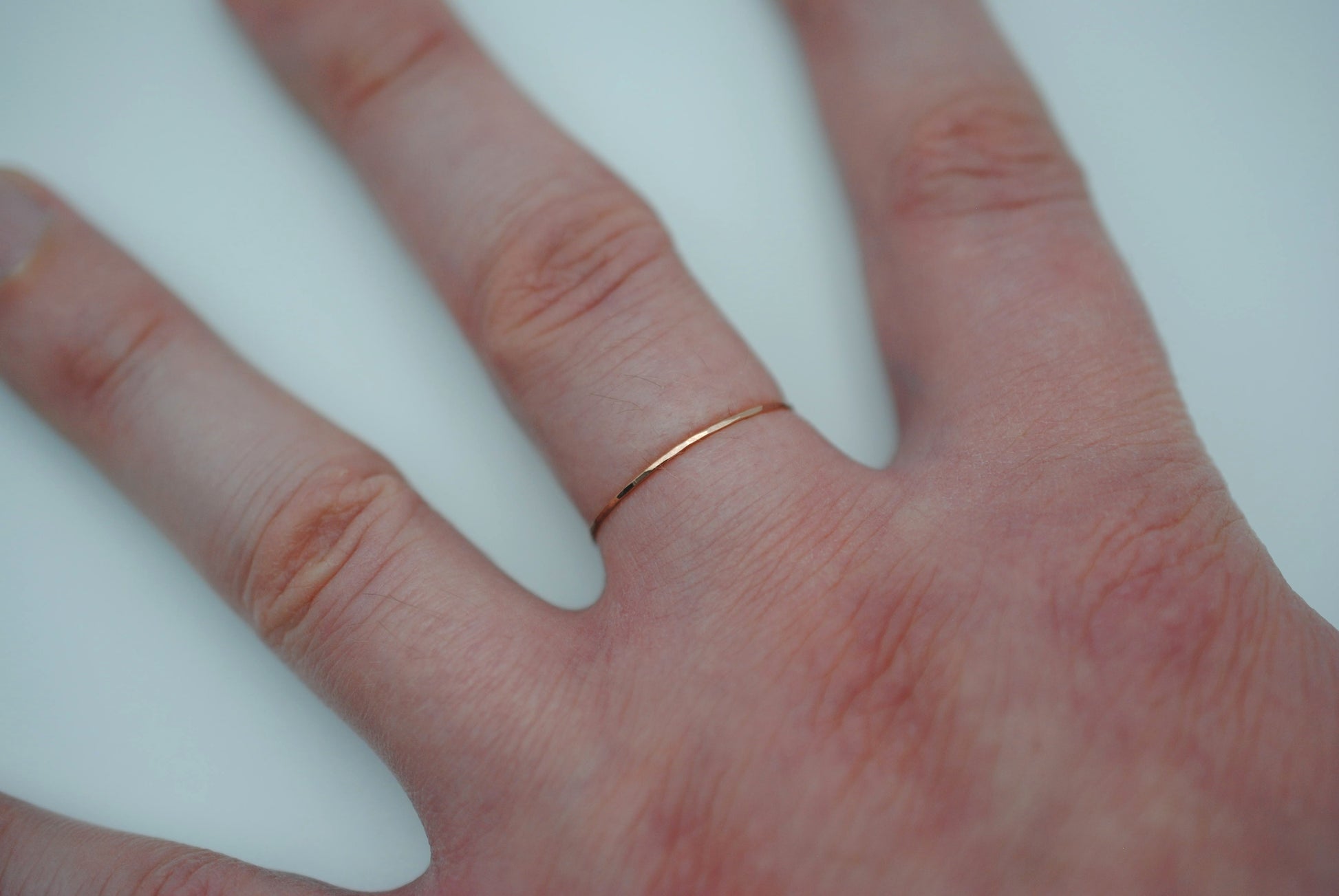 This is our thinnest stacker rings. They are 22 gauge, about .6mm wide.
